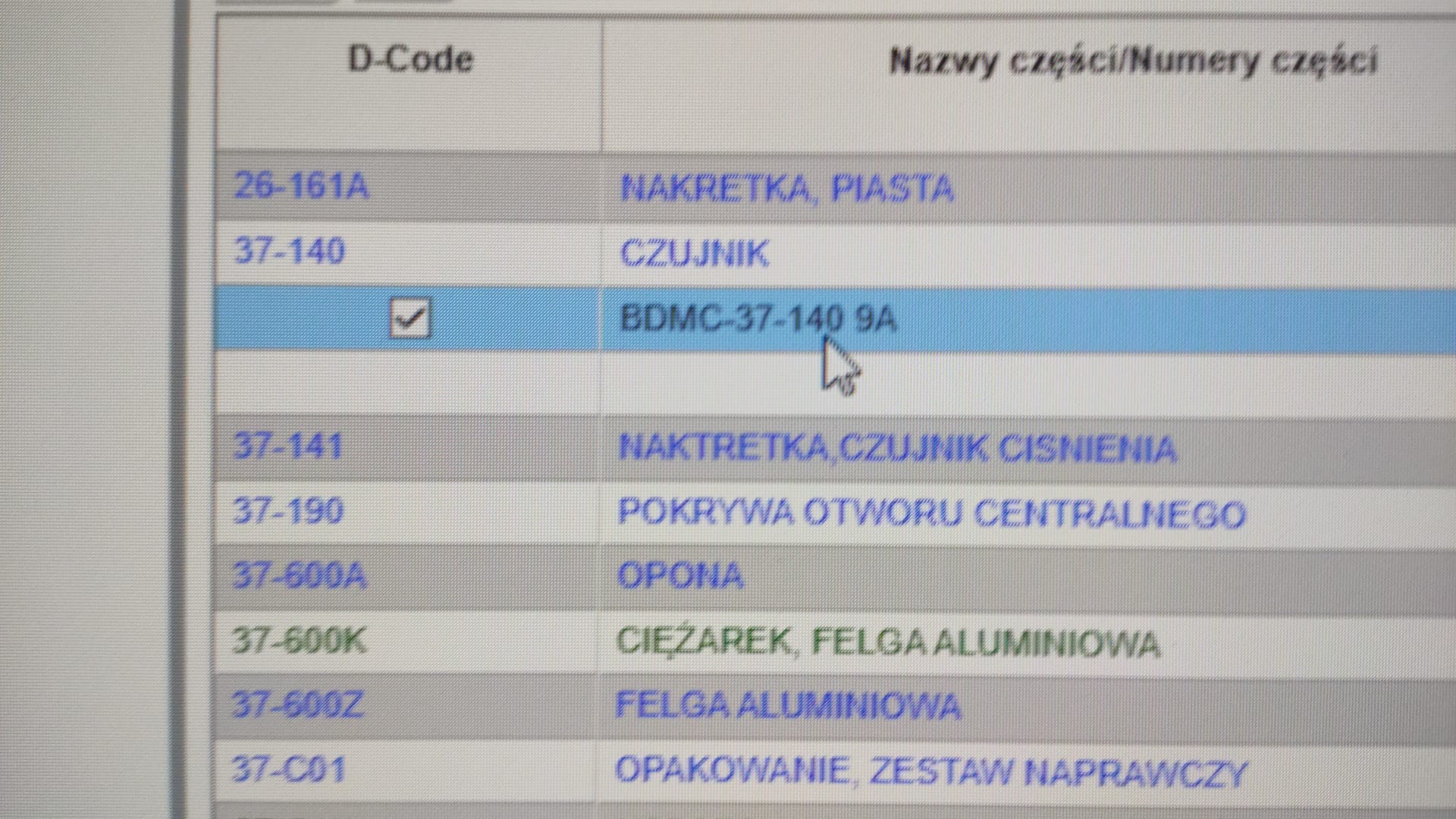 Jednak wczoraj szef grupy zajrzał mi w dokumentację fabryczną i najwyraźniej kod czujników jest : BDMC-37-140 9A
