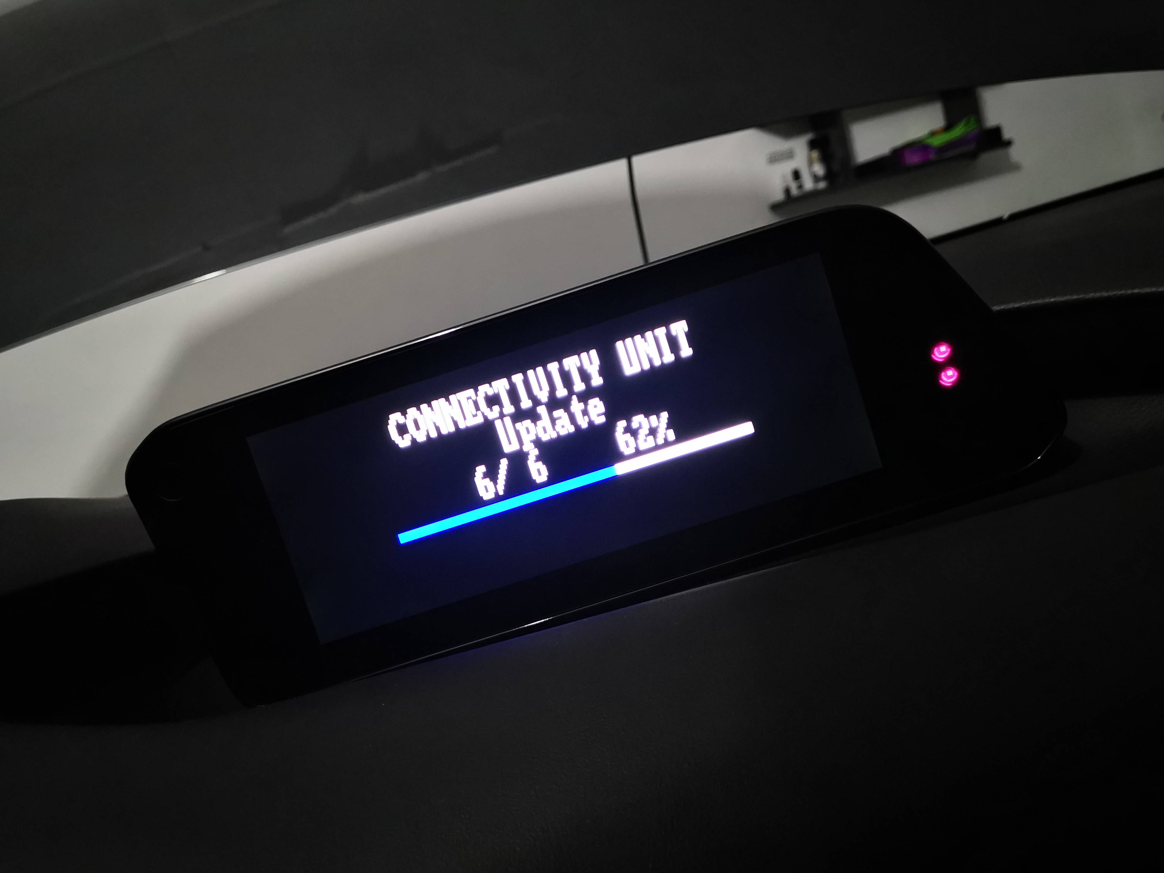 Podczas aktualizacji z wersji 56.00.210 do wersji 59.00.449 po wgraniu do końca pierwszego pliku „filsafe” musiałem przerwać aktualizację i na chwilę wyjść. Po powrocie po ok 30 minutach samochód był już wyłączony. Po ponownym uruchomieniu tablet jest czarny. Radio gra na ostatniej stacji i niestety monitor się nie uruchamia.
