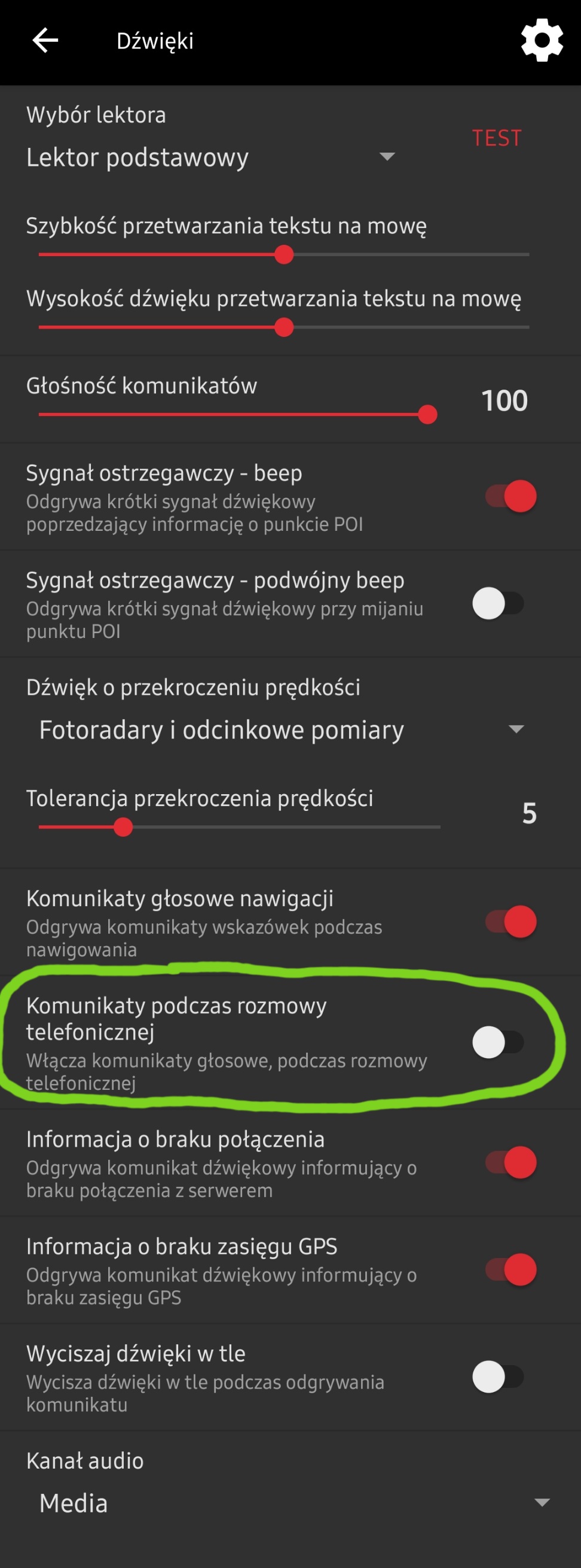 Jest jeszcze do sprawdzenia to ustawienie jak na poniższym screenshocie. Yanosik przynajmniej nie powinien wtrynić się do rozmowy głosowej.