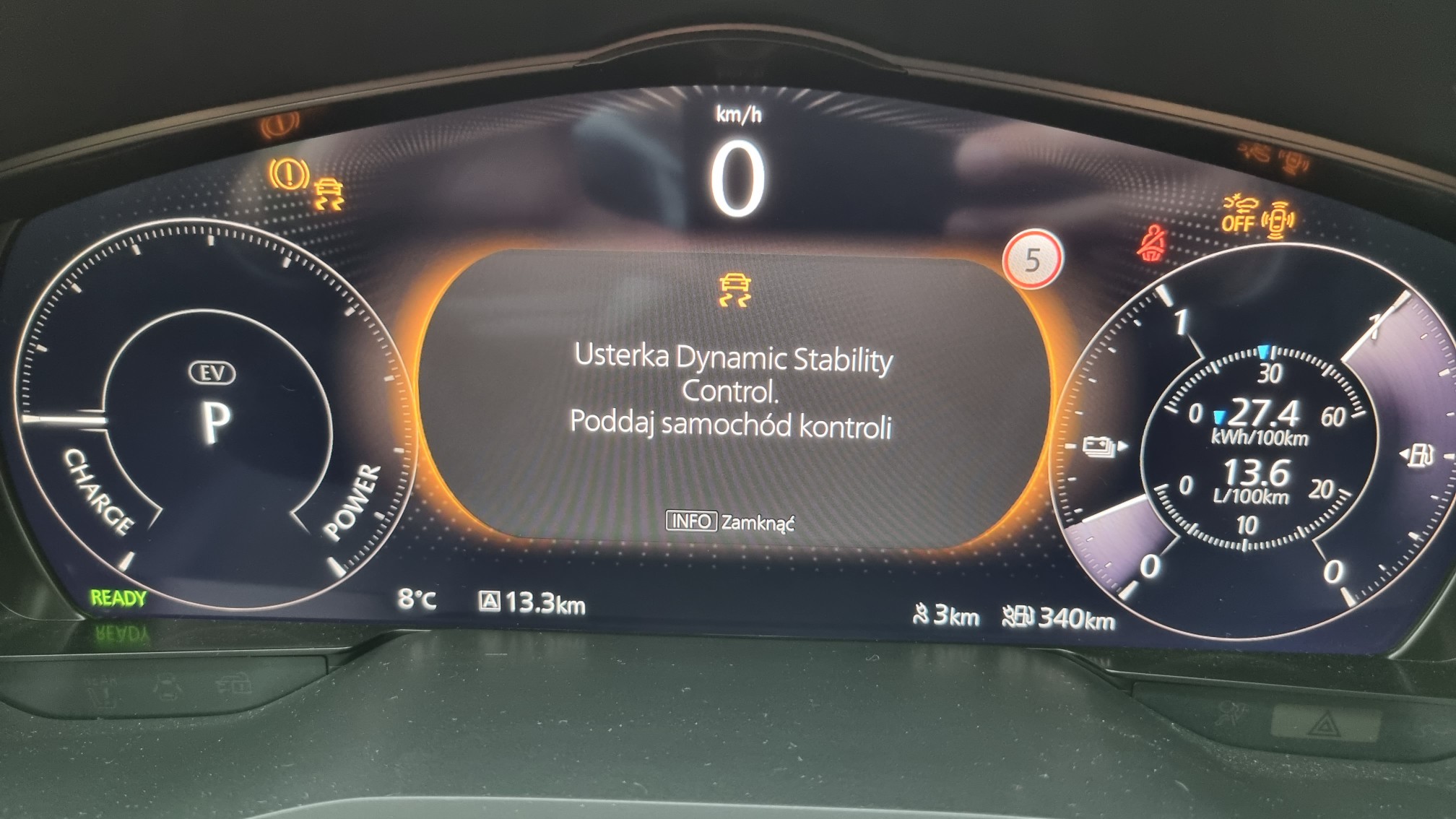Też czasami tak mam. Po jakimś czasie podczas jazdy wraca do normy. Raz mnie zaskoczyło w niskiej temperaturze kiedy wywaliło usterki chyba wszystkiego łącznie z gniazdkiem ładowania a po restarcie było ok.