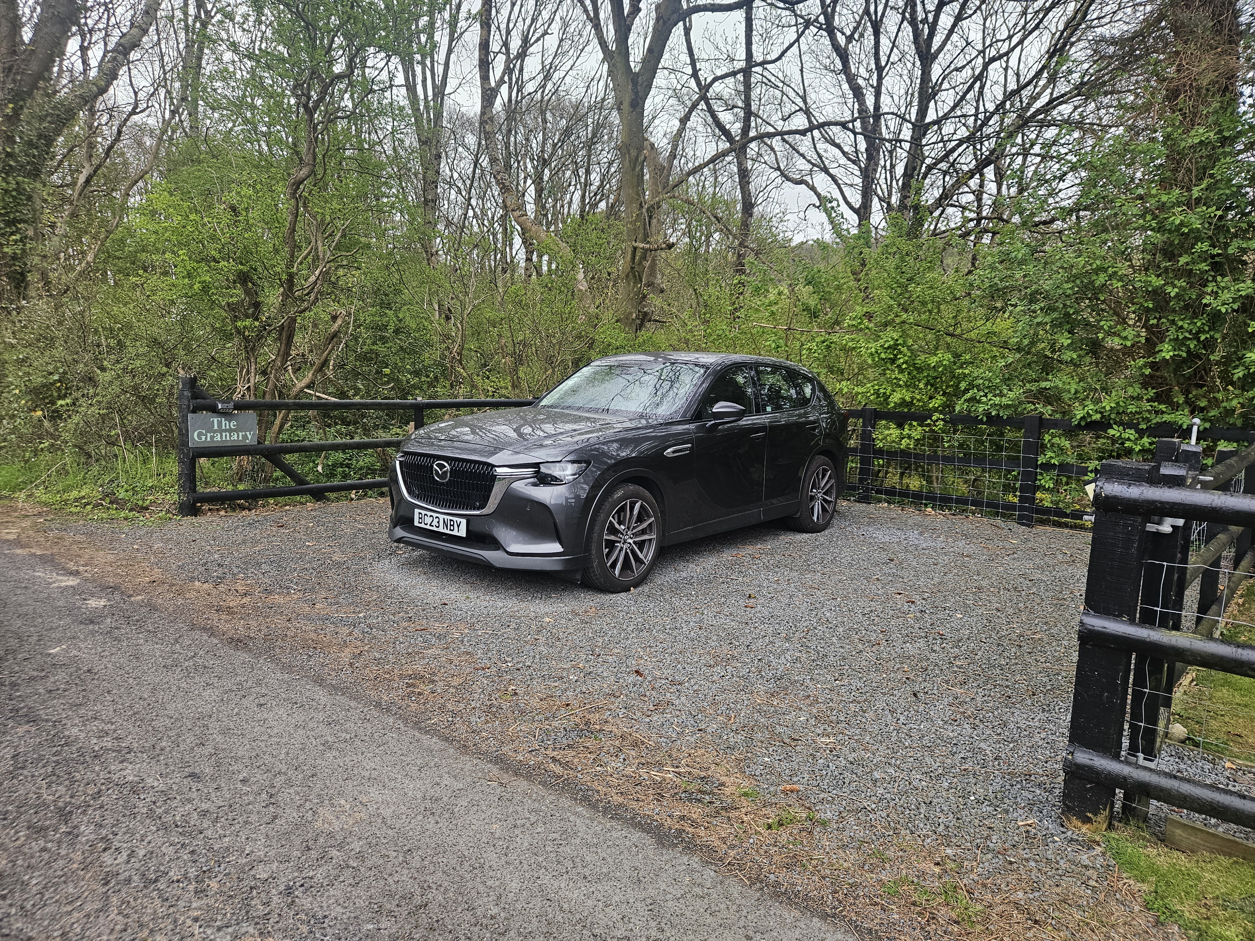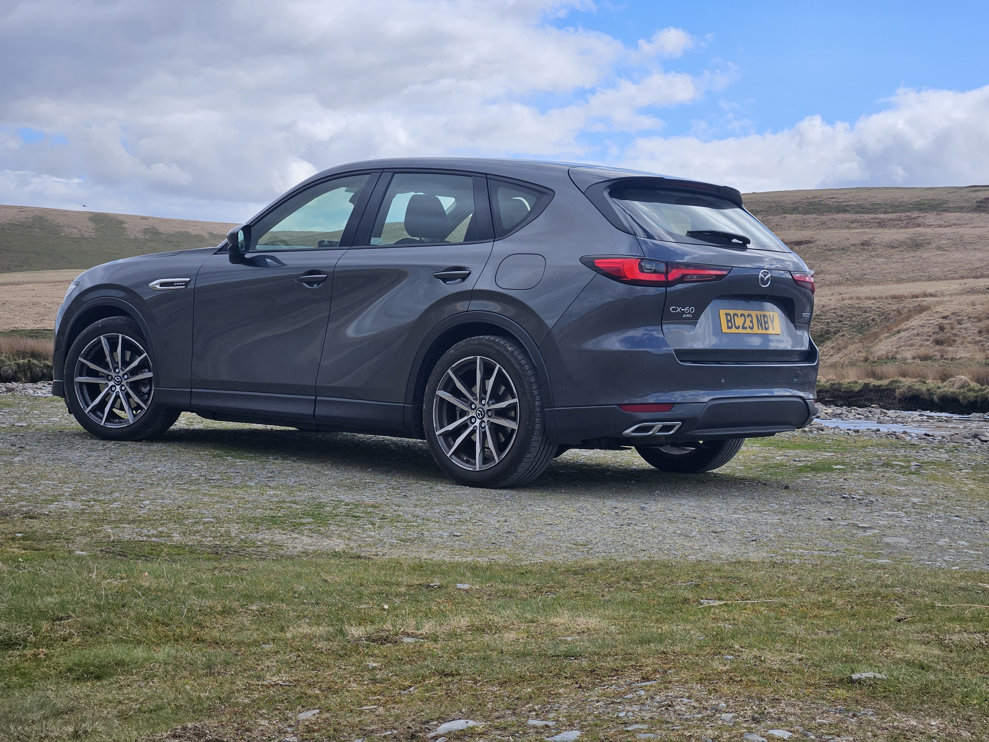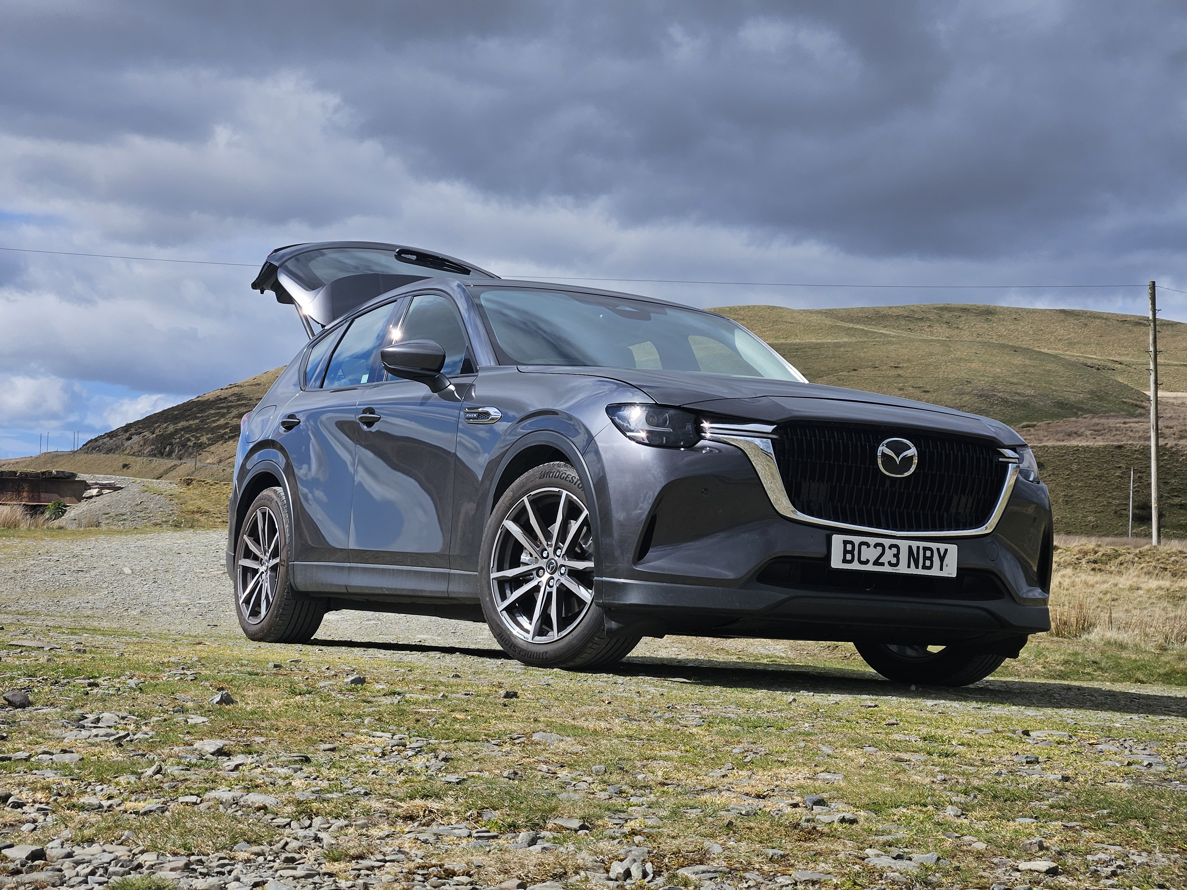 Auto to Mazda CX-60 PHEV Executive 2023 Machine Grey – 1sza rejestracja 29 Sierpień, opuściła fabrykę 30 Maja 2023, przebieg w momencie zakupu – 12900 mil. Executive to wersja "bieda", co myślałem, że nie będzie mi za bardzo przeszkadzać, niestety chyba lubię komplikować proste rzeczy <glupek2>