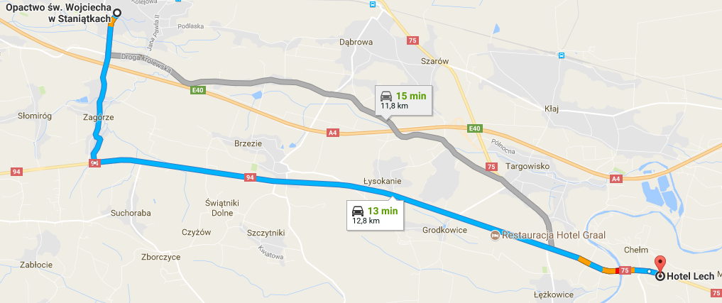 stamtąd udamy się około 13 km do: