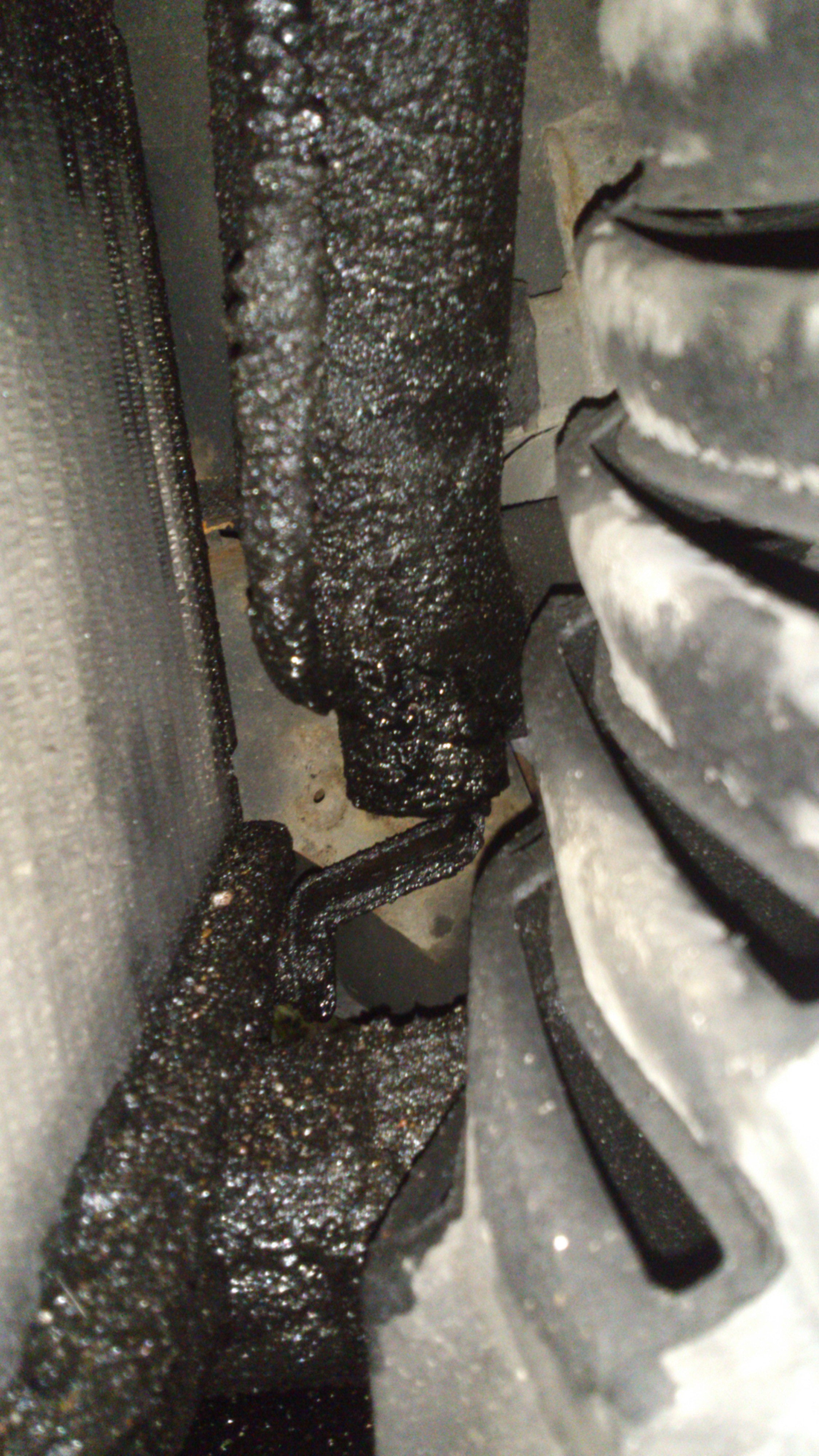 I mnie natchnęło do demontażu i naprawy intercoolera. Powodem, dla którego to zrobiłem jest chęć ciągłego ulepszania i szukanie dziury w całym. A tak na poważnie, to w ASO już sporo czasu temu dowiedziałem się, że moja mazda nie była na akcji serwisowej związanej z wadliwymi coolerami. No i faktycznie, było troszkę oleju pod górną rurą i na żeberkach coolera. Po porządnym wyczyszczeniu ujrzałem 2 pęknięcia przy górnej rurze. Oczywiście zostały zalepione poxiliną: