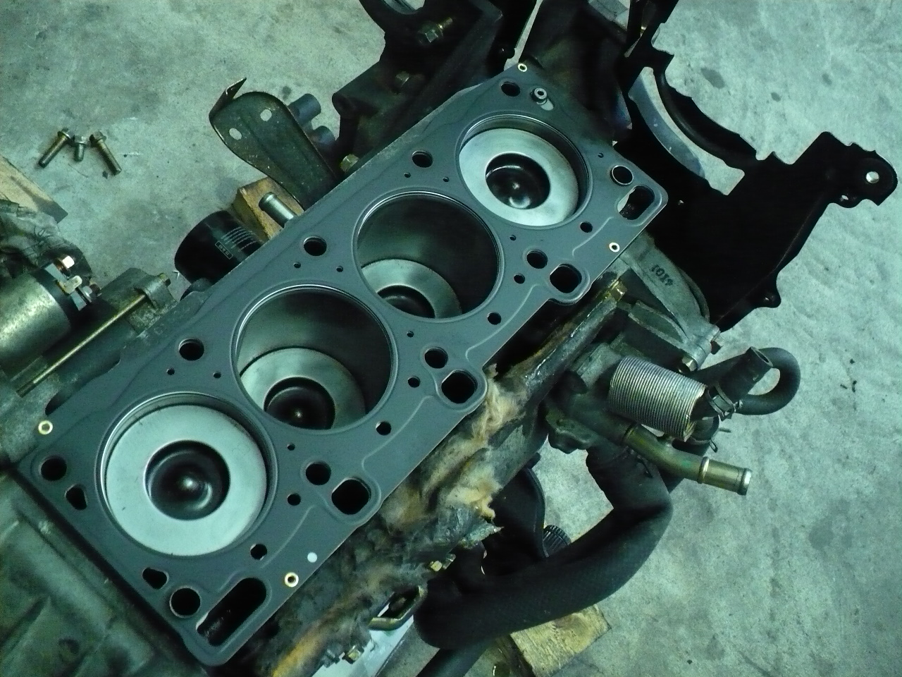 po oczyszczeniu bloku silnika, czas na montaż głowicy , którą to należy dokładnie sprawdzić czy nie ma rys i innych uszkodzeń, jak i szczelność zarówno no i splanować ją w spec. warsztacie