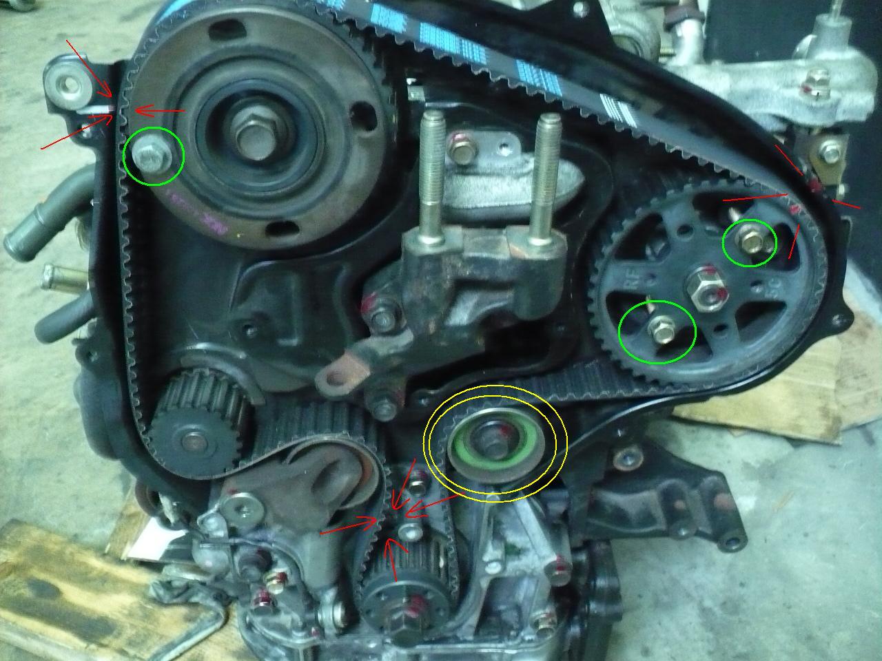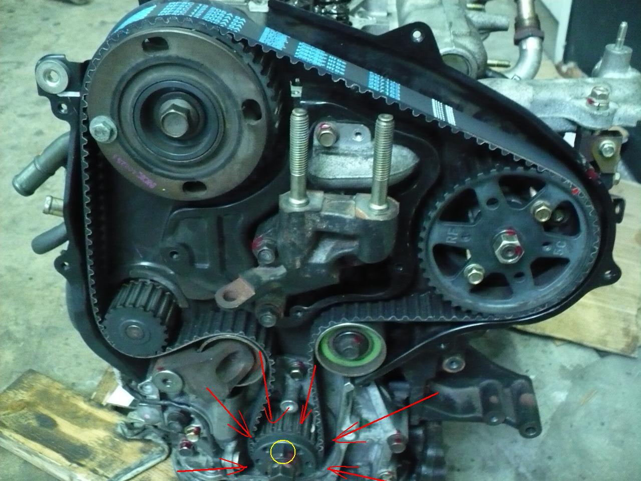 zawsze zaczynamy montaż paska rozrządu od rolki , która kręci się w przeciwnym kierunku niż sam silnik, to ta na kanarkowo...