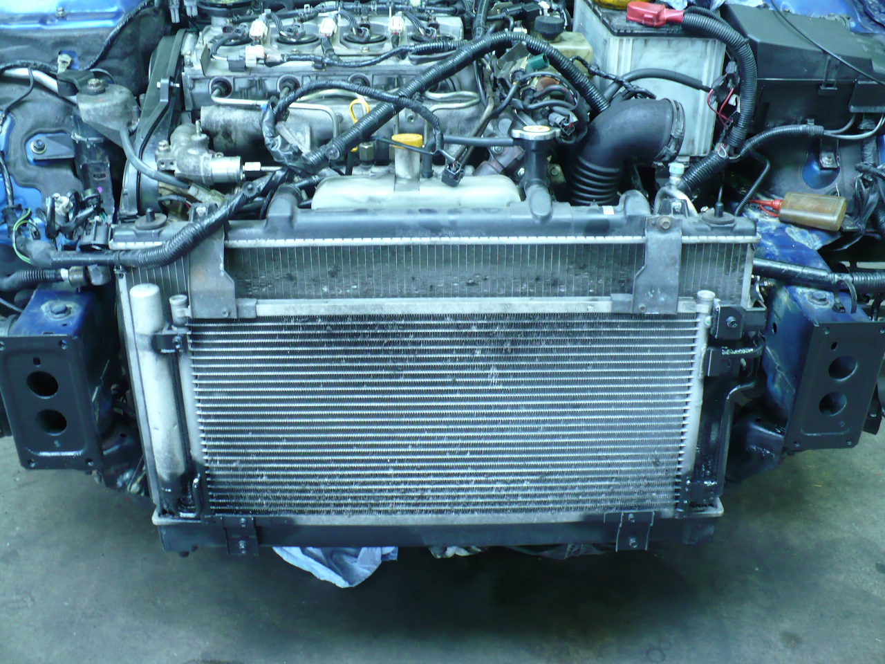 cały zespół napędowy (silnik+skrzynia) został wyciągnięty pionowo do góry,bez demontażu pasa czołowego,chłodnic itp.