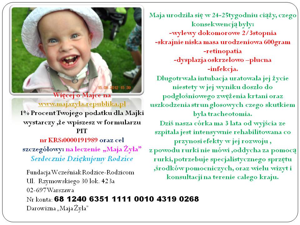 to proszę o wsparcie dla małej Mai córeczki kuzynki mojej zony.