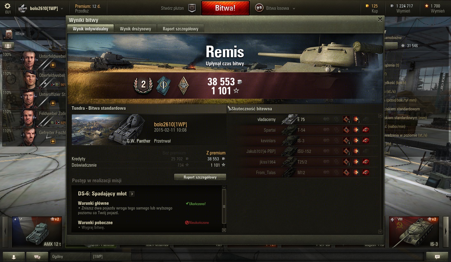 Ale miałem przed chwilą epicką bitewkę GWpanterem.Nie dość że praktycznie sam ogarnąłem losy bitwy ,to jeszcze na końcu pojedynek z E75,on totalny noob,ja mu z półobrotu z kilku metrów-weszło,on i-tylko gąska