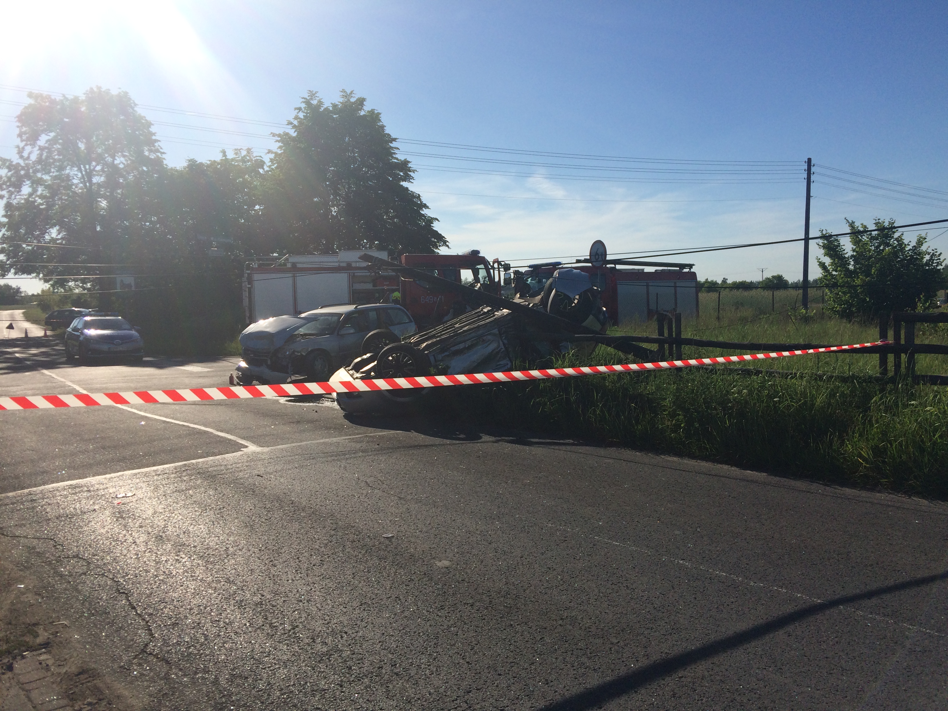Posprzątali ten złom. Czekają jeszcze na telekompromitację polską vel orange by sobie coś zrobiła ze słupem. Co ciekawe facet wyszedł o własnych siłach z tego auta. Dość często tu są dzwony, bo widoczność kiepska i trzeba się wychylić by coś zobaczyć. No ale tym razem podobno facet nie zauważył znaku stop i przeleciał