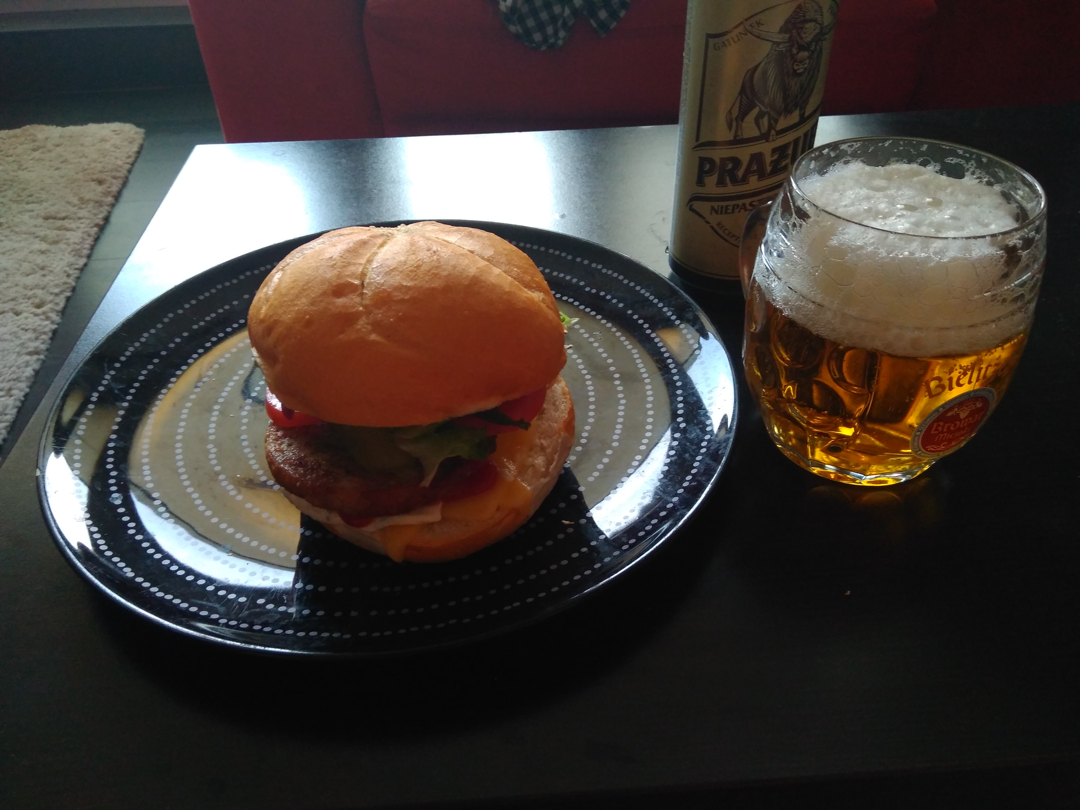 Bułeczka oczywiście na lekko chrupiąco a sos klasyczny burgerowy.