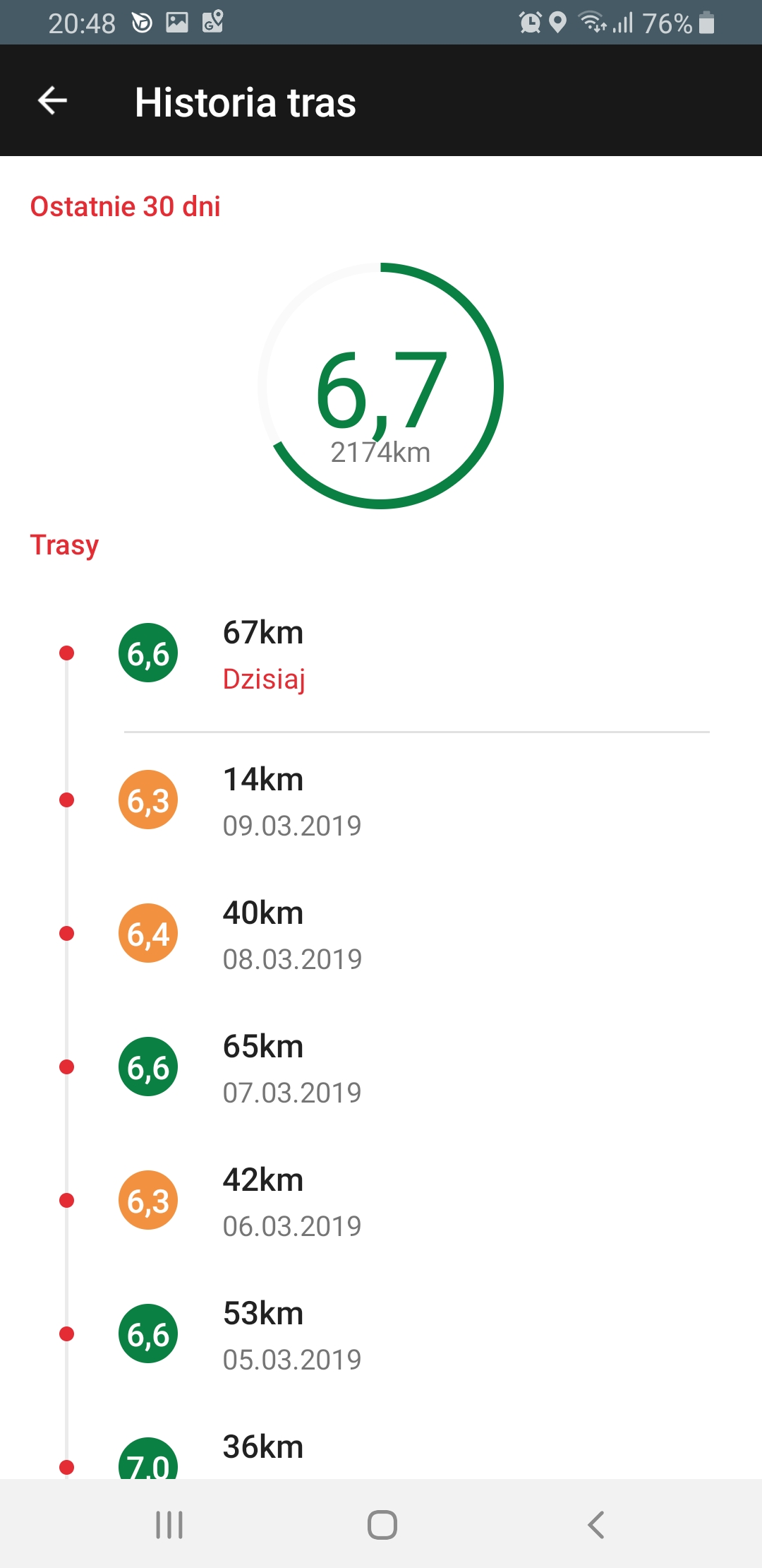 Średnią z 3000km (30 dni) mam teraz 5,7.