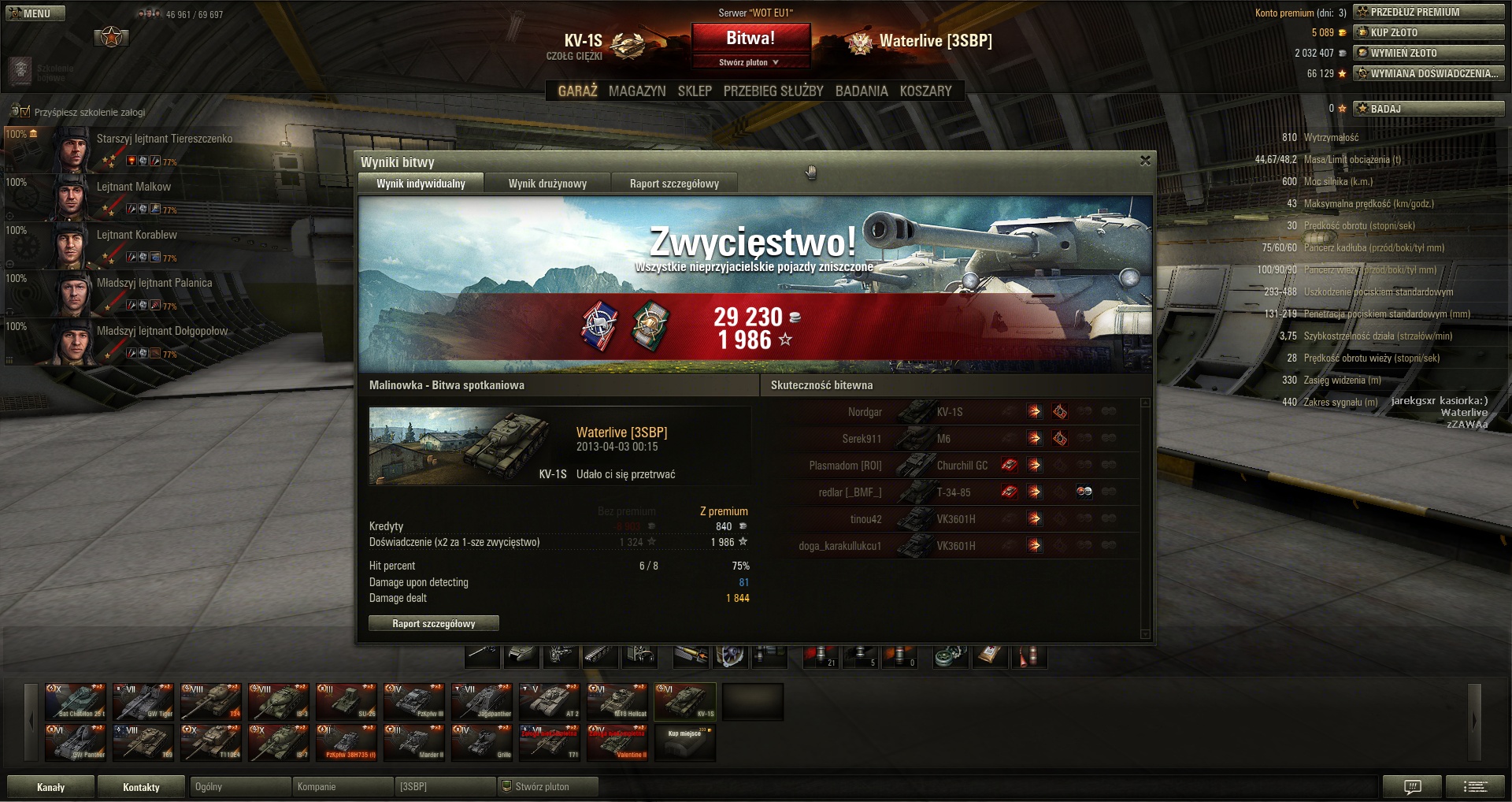miał całą resztę graczy w kompanii, a z drugiej strony każdy miał nie strzelać bo on se chce podobijać i zdobyć medal. nienawidzę takich egoistów Ok czyli KV13 bedzie następny,ale po KV1S ide drugim torem bo ponoć to pozycja obowiązkowa