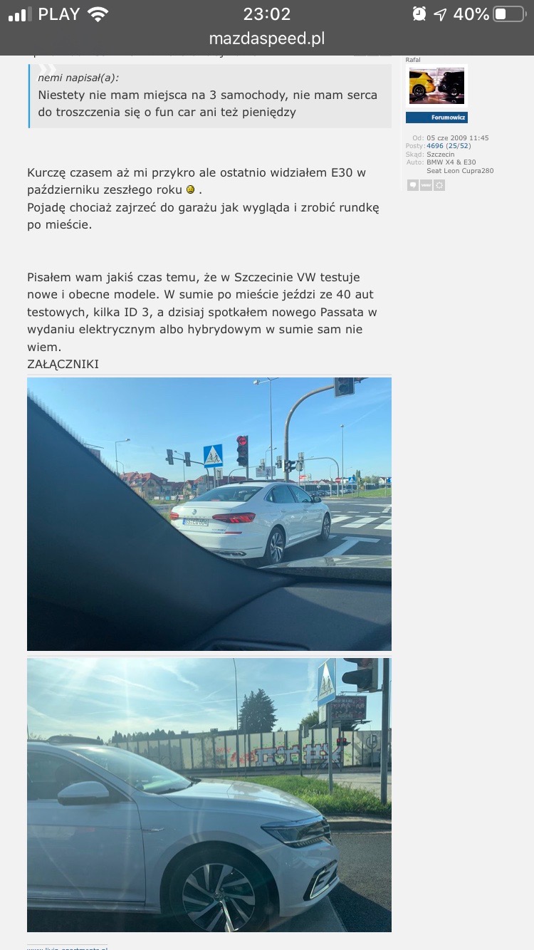 Pisałem wam jakiś czas temu, że w Szczecinie VW testuje nowe i obecne modele. W sumie po mieście jeździ ze 40 aut testowych, kilka ID 3, a dzisiaj spotkałem nowego Passata w wydaniu elektrycznym albo hybrydowym w sumie sam nie wiem.