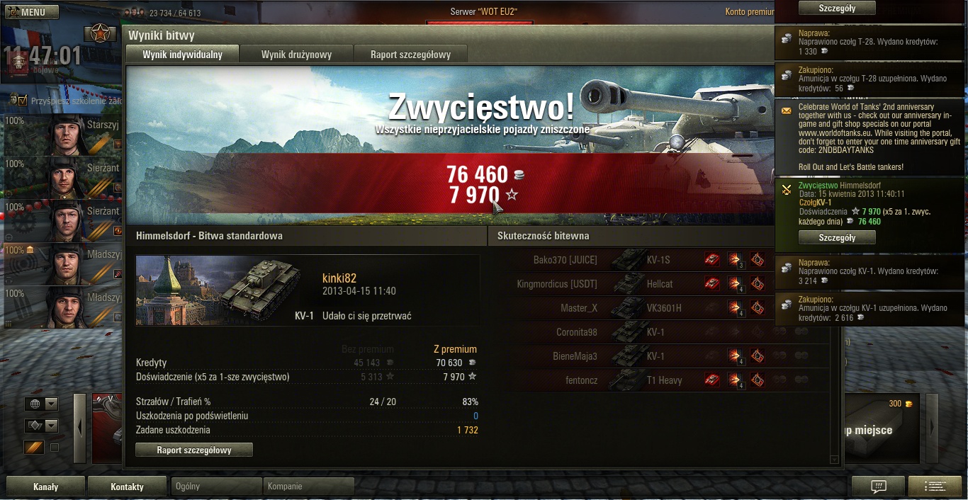 a nad VII trzeba popracowaćFasola napisał(a):Korzystając z okazji urodzin wale tylko goldami, przeważnie V tiery padają na raz, KV i KV-1S – na 2![]()