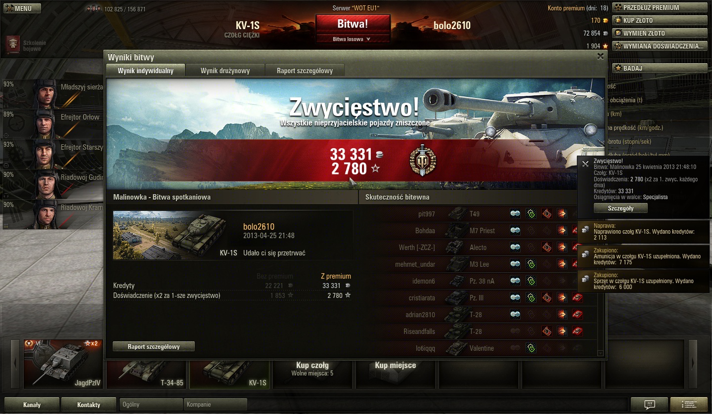 Zakupiono czołg 'T54E1'. Wydano kredytów: 3 600 000.
