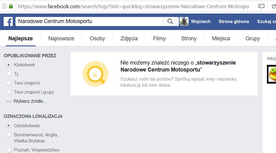 Profil FB nie istnieje, a argumenty do <dupa>