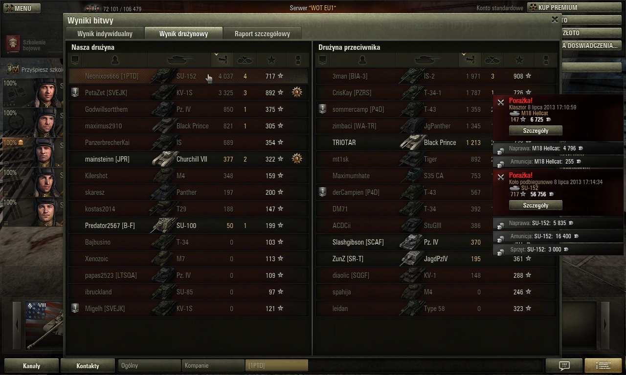 to chyba mój rekord jeśli chodzi o zadane obrażenia, szkoda że przegrana bitwa i mnie zniszczyli ale sam nie wygram.
