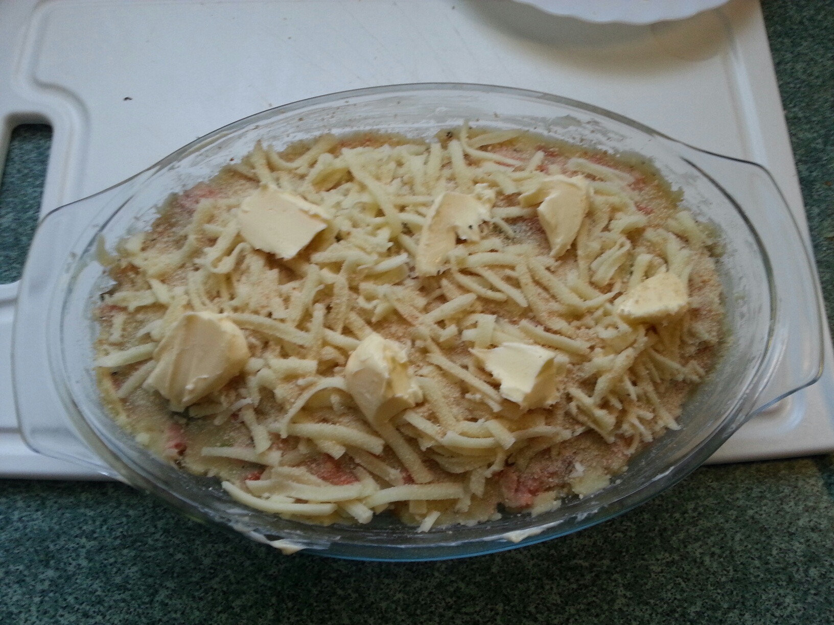 Gotowe, do piekarnika 180 st na 30 min. Kilka skrawków masła na wierzch )