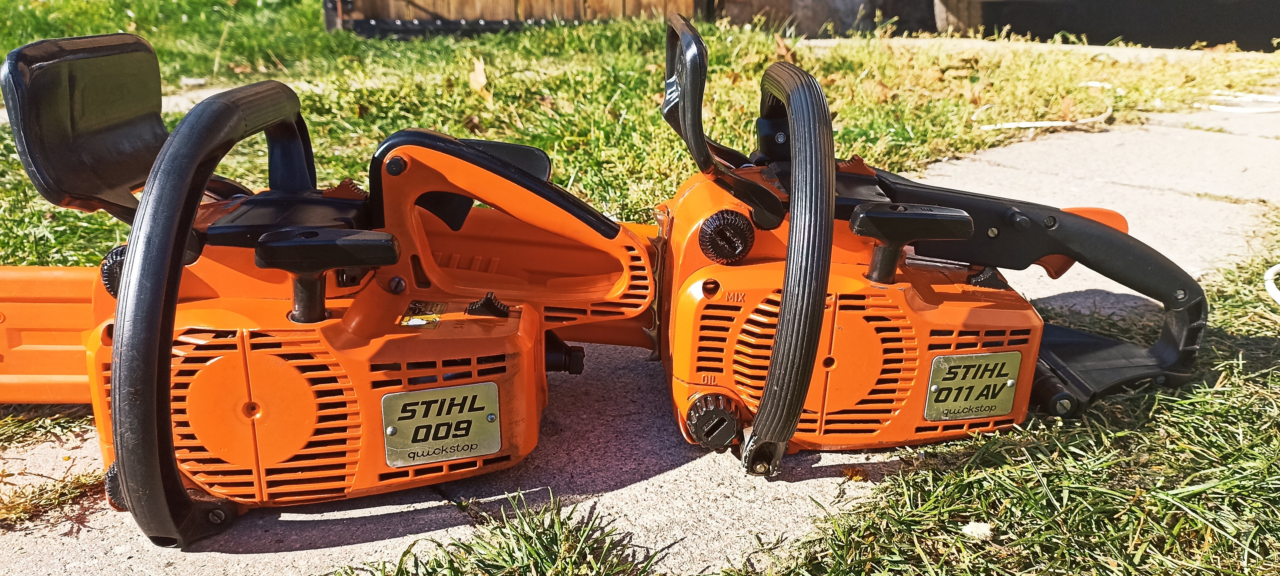 Jeśli chodzi o trwałość to te klasyki przebijają nowsze plastikowe konstrukcje, mają ponad 30 lat i zbudowane są ze stopu magnezu. Natomiast jeśli komuś zależy na wadze to lepsza wyjdzie np ms 180 czy jeszcze nowsza MS 181/211. Jedyna wada tych starych to właśnie masa, przy rzadkim użytkowaniu chyba nie ma to znaczenia. W obsłudze dość proste jak budowa cepa. Wyłącznik, przysłona ssania, blokada gazu i sama manetka gazu. Przy 011 mamy obudowę z metalu i system antywibracyjny. 009 nie ma amortyzacji ale za to ma uchwyt wyżej. Właśnie przed chwilą ktoś kupił na Allegro tą 009, jutro już wysyłam