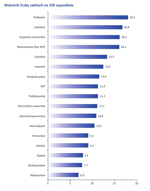 Na obrazku dane z KGP, w artykułach w których piszą o wzroście powołują się na liczby 1010 wypadków w 2022 i 732 w 2021 – wzrost ~30% ;)