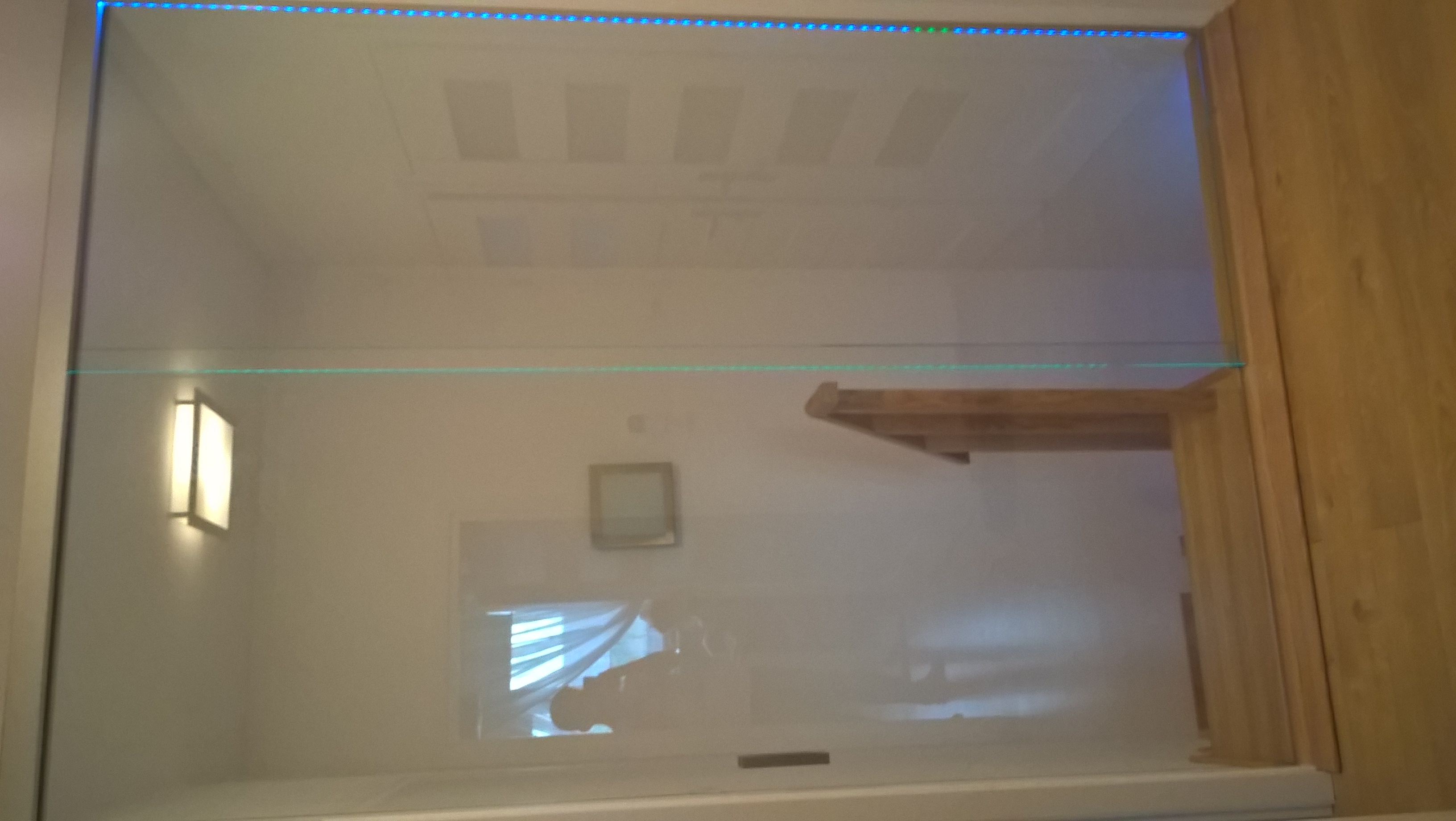 Jeszcze rozważamy zasłonięcie dołu tej stałej szyby jakąś ozdobną płytą, póki dzieci używają jakichś zabawek twardych, wózków etc. Żeby zminimalizować ryzyko, bo jednak da się to zbić chociaż ma cm grubości.