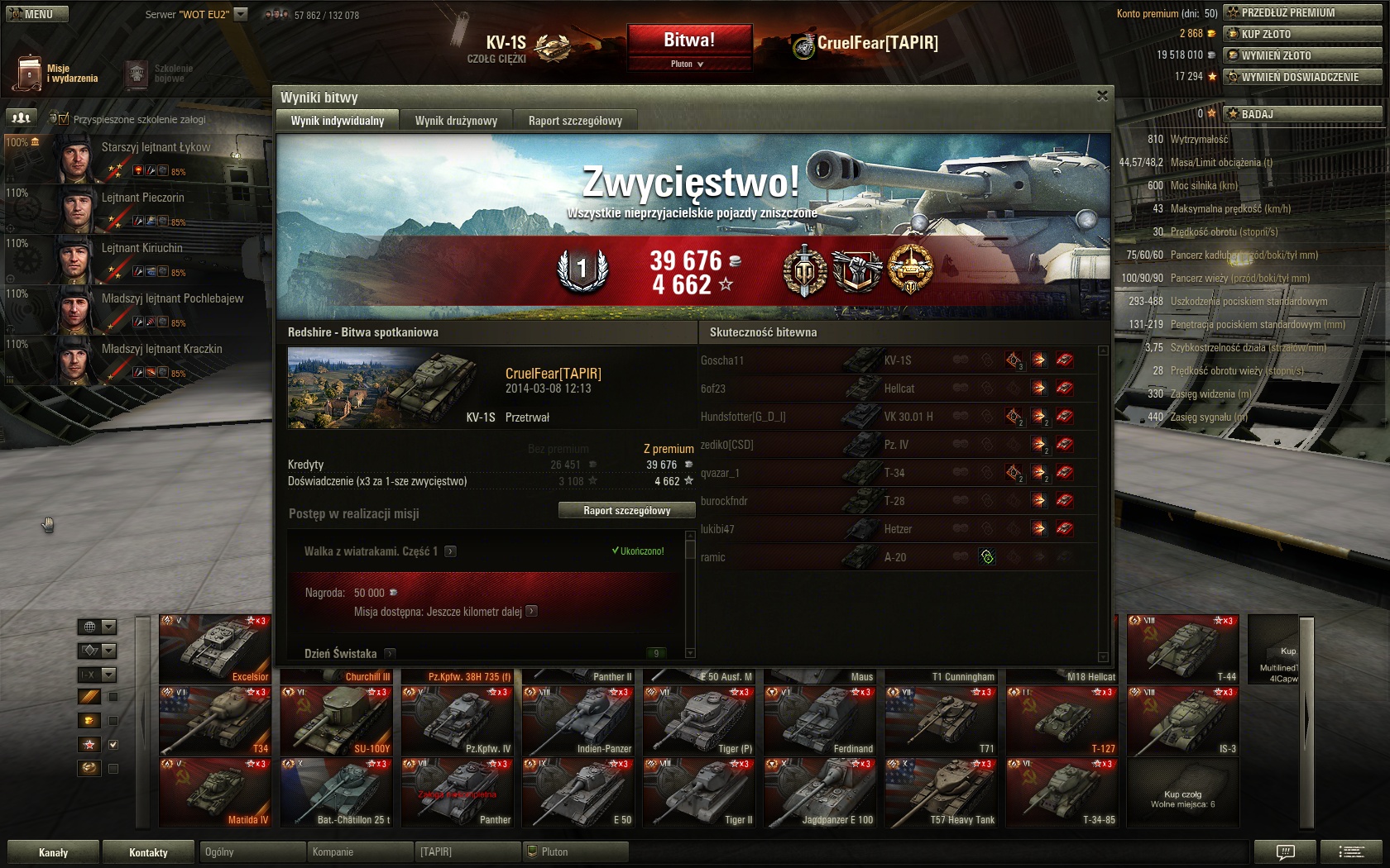 Przewidywania spełniły się w 100%, w momencie, jak dotarłem do naszej bazy to kotłowało się tam kilka wrogich maszyn, więc nie było na co czekać. Jak zacząłem decapować to okazało się, że rozwaliłem co najmniej 4 wrogie czołgi, zbiłem cap do zera i zakończyłem bitwę niszcząc ostatnią wrogą maszynę zanim dotarła odsiecz. Medal De Langlande'a i odznaka Obrońcy bardzo mnie ucieszyły