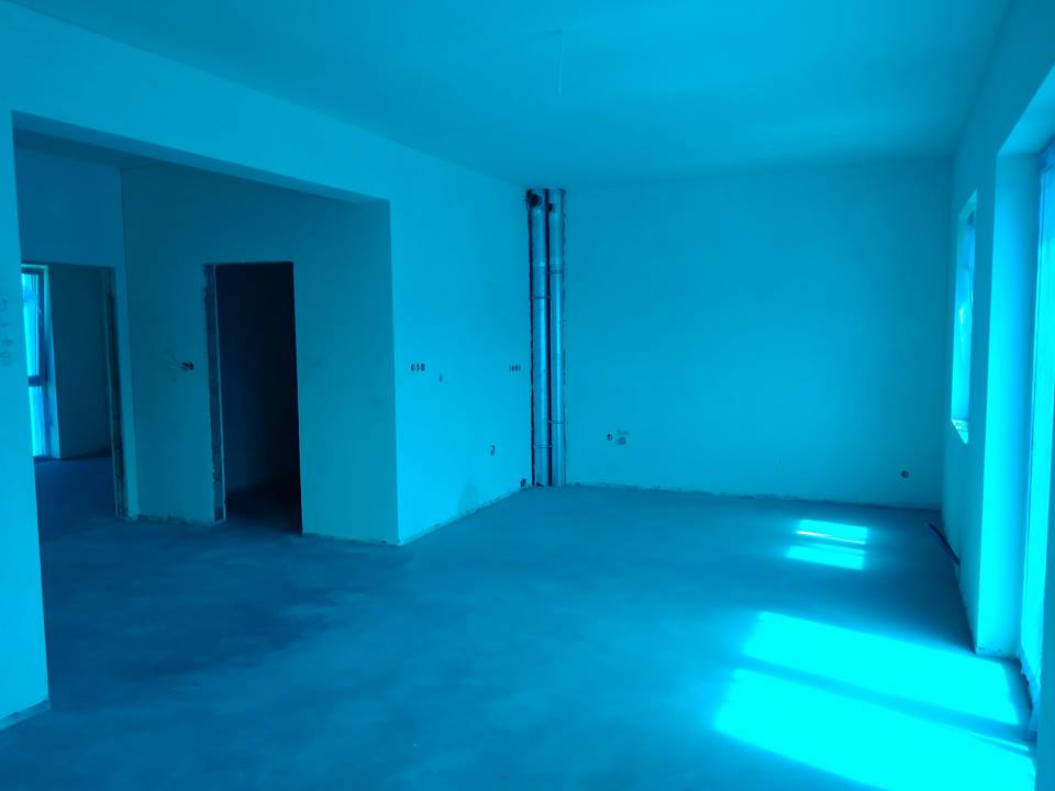 Już zrobiona instalacją pod klimatyzację. Na górzę widać na belkach i słupach weźby. Na dole puszczone pod tynkami. Na zewnatrz już schowane w elewacji.