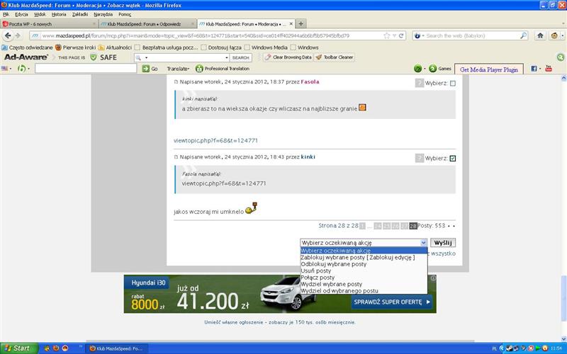 Jeśli natomiast chcesz je przenieść do innego – już istniejącego wątku, to używasz "połącz posty" – przenosi tylko wybrane, nie ma opcji "od".