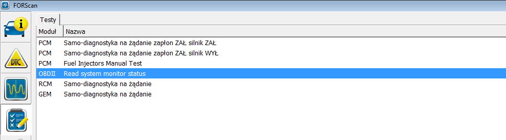 Testy. Tu sprawdzamy czy występują np. błędy modułów lub kalibrujemy wtryskiwacze(diesel).