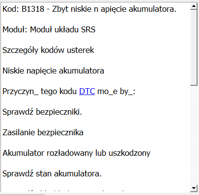 Okno błędów (DTC):