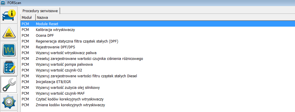 Tutaj możemy wybrać inne moduły z innych podzespołów niż tylko ABS.