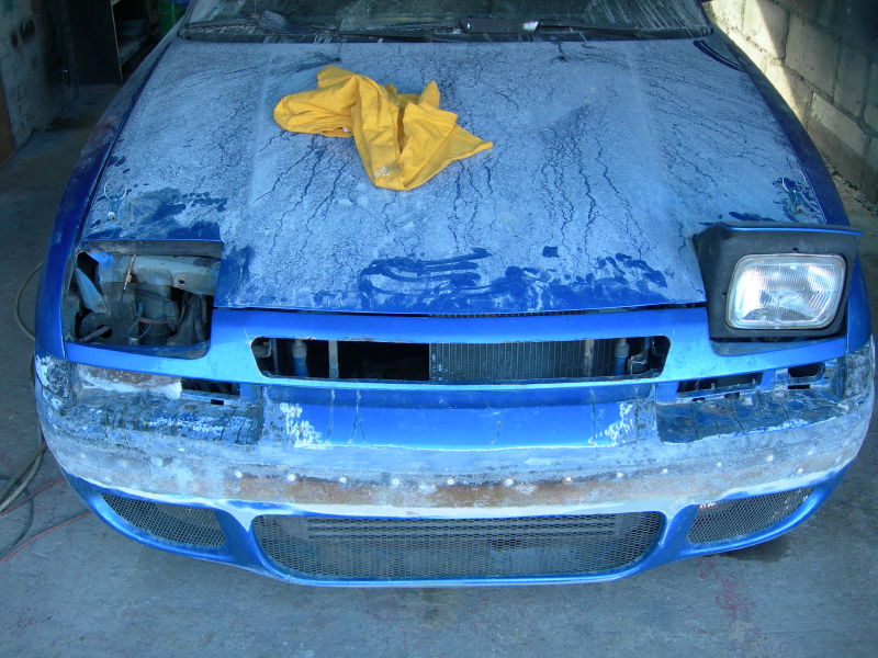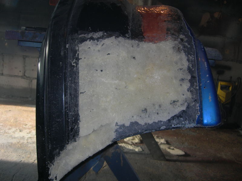 fajnie ten wlot wyszedl.idelanie bedzie chlodzic turbinke i gorna czesc chlodnicy.przedni zderzaczek tez pieknie rowniotko wyszedl.a ogolnie autko wyglada teraz (takie brudne,bez lampy,plama oleju) jak najgorszy wrak.ten noz w bagazniku moze mi sie kiedys przydac.