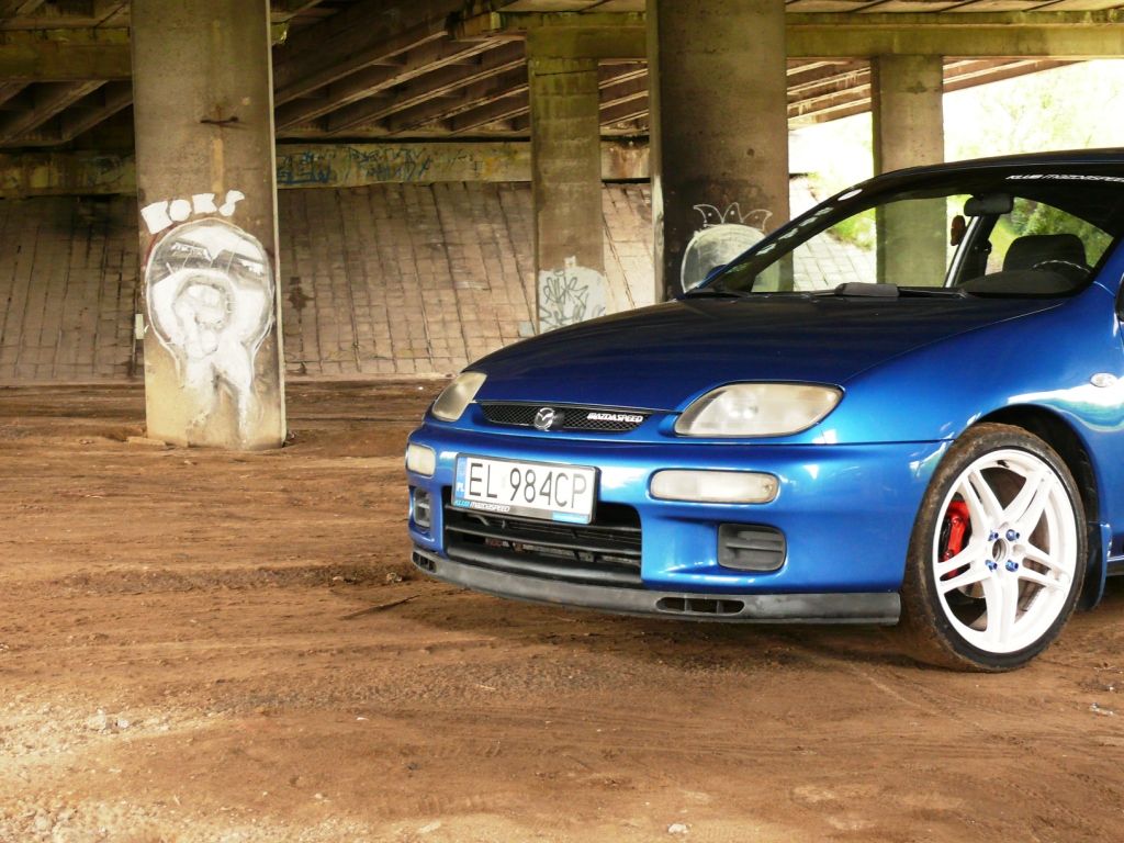 Jednocześnie Cytryna była piewszym polem eksperymentów na polu modyfikacji – dostała skórzano-welurowe wnętrze z wersji Volcano, alufelgi, oryginalną lotkę i pierwsze próby ulepszenia car audio. Niestety ilość awarii i wiek ( rocznik 90' ) skłoniły mnie do pójścia japońską drogą ;) Pierwsze poszukiwania dotyczyły MX-3 V6 z ostatnich roczników, niestety ceny i stan oglądanych aut nie zachęcał, stąd skierowanie wzroku ku 323F BA V6. Zakup Cetki był dość przypadkowy, a jednocześnie niesamowicie udany – znajomy zadzwonił z Niemiec, że jest taka sztuka, ostatni rok z klimatyzacją i niebieskim kolorze za dobre pieniądze. Poliftowe Z5 i wyszperany na necie kolor przekonał mnie do zakupu i po ponad 4 latach użytkowania nie żaluję ani chwili spędzonej w i przy tym aucie :)