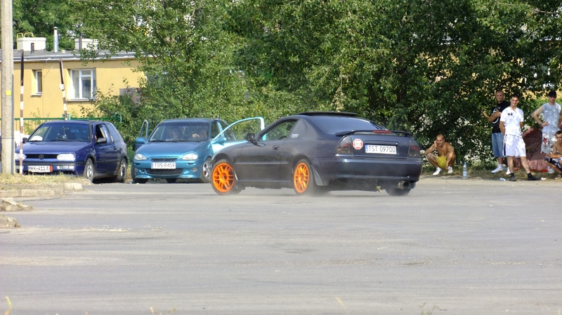 Na miejscu czekał na nas już ogrodzony plac i zaczęło się parkowanie, z którym trochę nam zeszło. Chyba nikt nie spodziewał się aż takiej ilości aut. Passki które przyjechały grupą pod sam koniec musiały wbić się w dużej części na trawnik, przy wjeździe na teren ZOZ'u. Jeszcze tylko mała chwila na zapisy, i zaczęły się przejazdy próbne w jeździe zręcznościowej. Żałuję tylko, że nikt z nas w końcu nie wystartował. Tak czy inaczej w zręcznościówce niektóre autka pięknie zarzucały tyłkami na ręcznym, lub pokazywały na co je stać przy tył napędzie, Polonez wymiatał po prostu