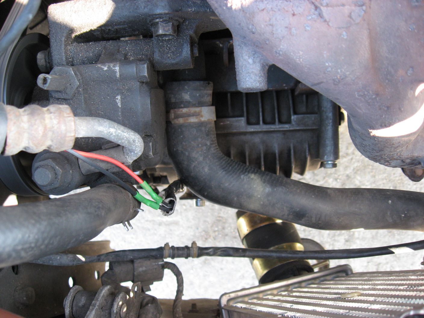 Kompresor 2010-08-11 – jak widac zrobione domowym sposobem. Silnik troche leje olejem na lewo i prawo, pod maska nielad, a ja autem robie codziennie 40km (na LPG ) i nie chce sie zepsuc ;)