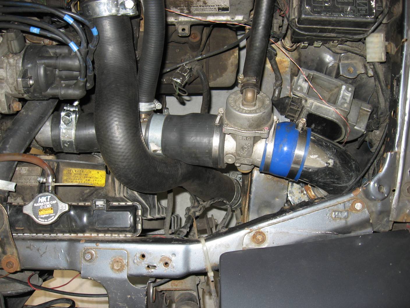 Kilka fotek z tego, jak siedzi kompresor i dolot w aucie (z malym intercoolerem):