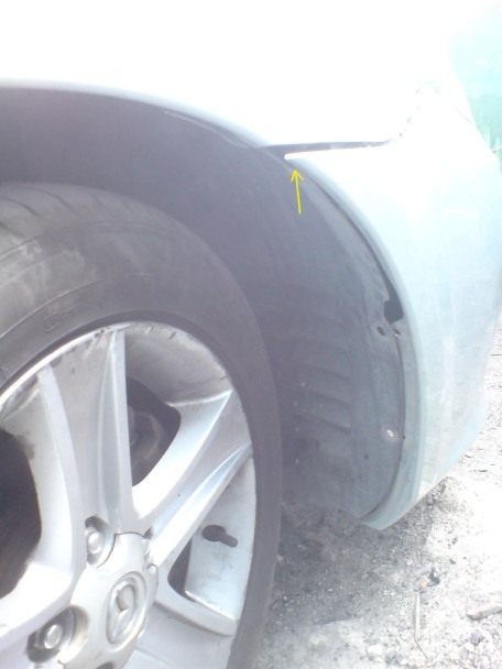 Jedna ze śrub schowana jest na końcu zderzaka-widoczna jest dopiero po odchyleniu plastikowej osłony w miejscu zaznaczonym na zdjęciu:
