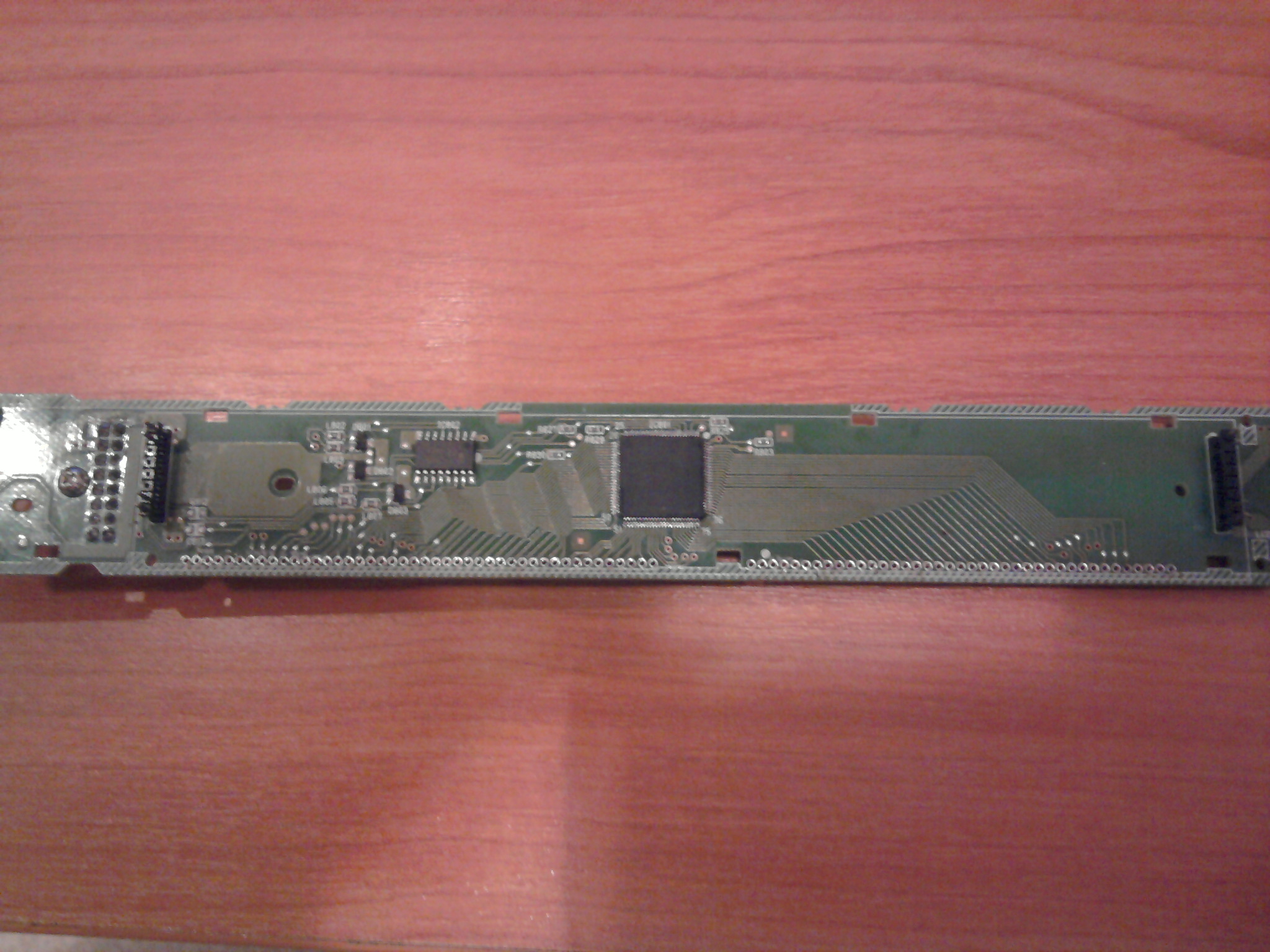 Winnym choinki na wyświetlaczu jest układ sterujący nim ... układ ten jest przylutowany do PCBA w technologii SMT oraz pokryty warstwą ... nazwijmy to silikonu . Wyprowadzenia tego scalaka trzymają się padów PCBA na słowo honoru – podczas usuwania silikonu nie jedno wyprowadzenie było "luźne"