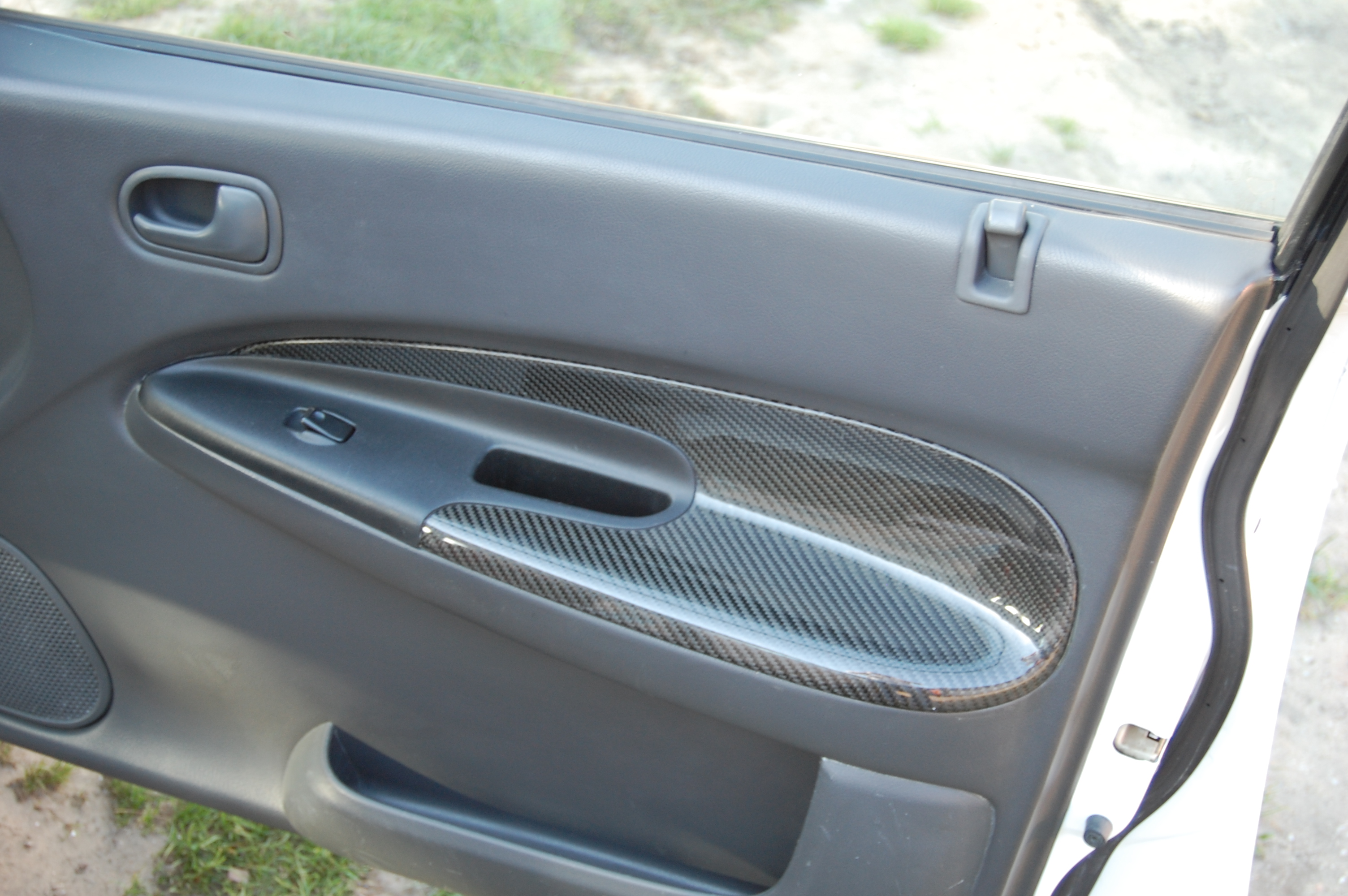 Tak jak pisałem wcześniej troszkę carbonu(na chwilę obecną elementy boczków, gałka biegów i panel nawiewu, będzie więcej) i alcantary w celu zamaskowania dziur po mocowaniu pasów na słupkach. Uprzedzam pytania, to prawdziwy carbon, żadna okleina