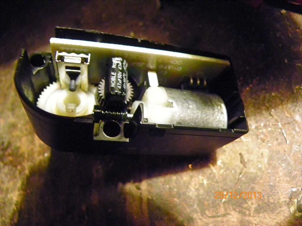 Wczoraj rozkleiłem klosz, wyjąłem silniczek i dzisiaj udało mi się go naprawić. Prawdopodobnie przez to, że nie używamy zbyt często regulacji świateł w swoich autkach oraz auto narażone jest na tortury (wiadomo, nasze drogi), od drgań w potencjometrze wyciera się warstwa grafitu co powoduje jego przerwę. Podjąłem próbę jego reanimacji poprzez konserwację i delikatne podgięcie blaszek stykowych na boki wytarć – udał się, ale nie jestem pewny co do trwałości takiej naprawy i nie będę montował tego silniczka do swojej lampy; sam potencjometr jest nietypowy i będzie problem z jego zakupem. Zamówiłem tutaj ostatnią sztukę podróby silniczka o nr podanym na poprzedniej stronie wątku – co z tego wyjdzie, zobaczymy.