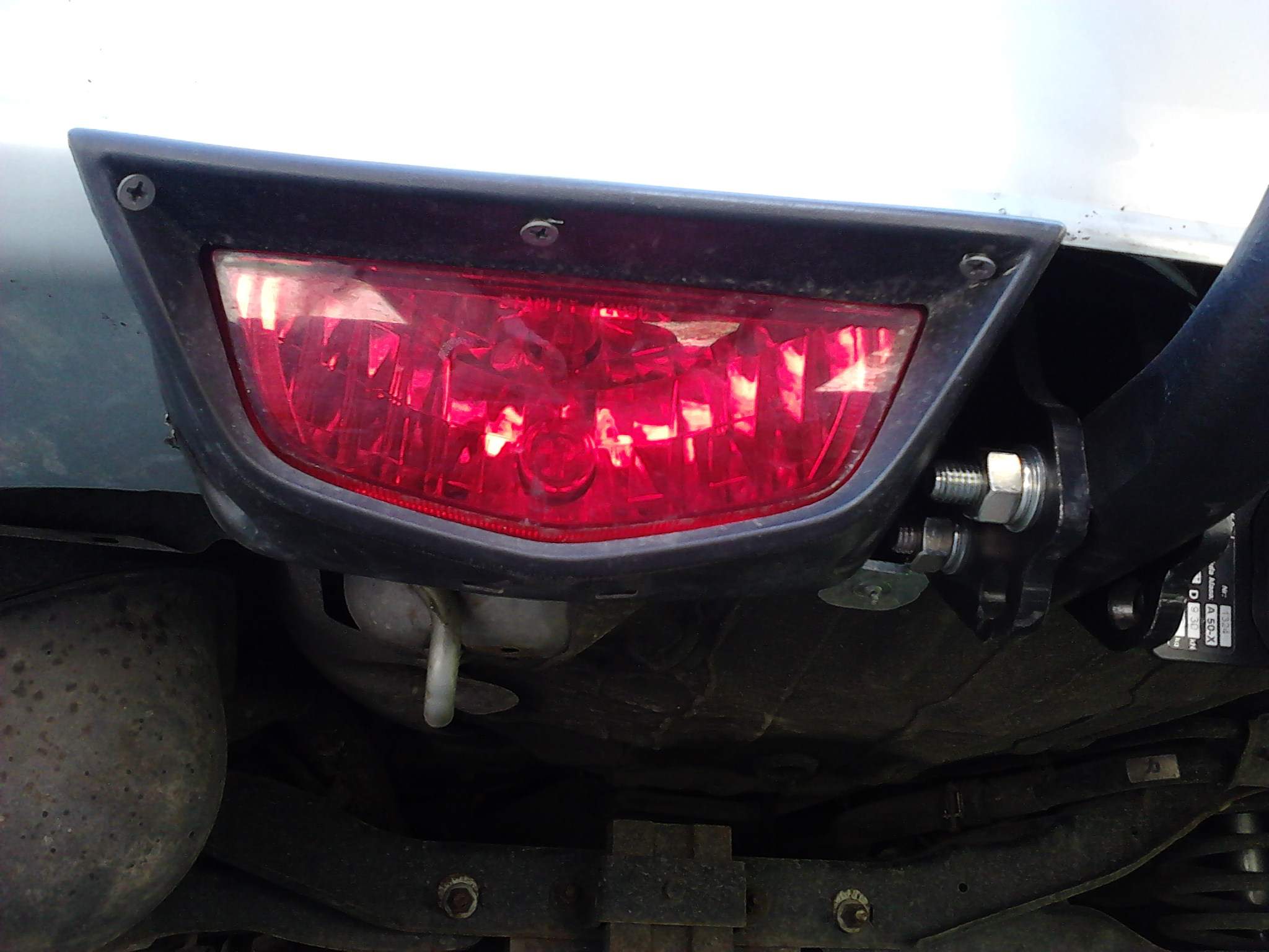 Montaż lampki: Wyciąłem identyczny kształt jak był pod lampą po lewej stronie i lampę zamontowałem w zderzaku tak jak była – tylko jest przesunięta o około 10-15 cm w lewo.