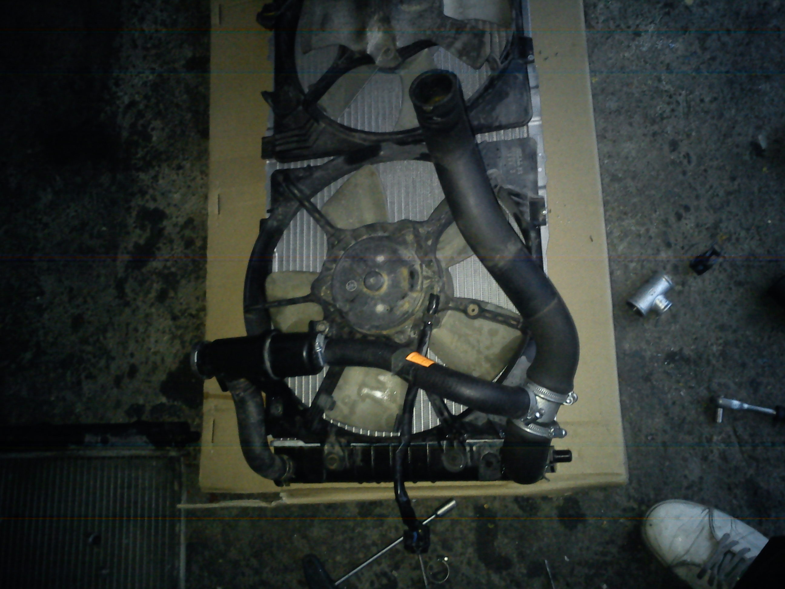 Wreszcie mi się to udało kopiłem nowa chłodnice od mazdy Xsedos 6 2.0 v6 cena 240 zł oczywiście zamiennik wymiary i mocowanie ma takie same jak stara brakuje przy niej tylko wyjścia na zbiorniczek wyrównawczy ale i na ten problem jest sposób sklep hydrauliczny = trójnik i 30 cm przewodu żeby przerobić dolnego węża i podłączyć go do zbiorniczka wyrównawczego, za wszystko wyszło 250 zł i mamy nowa chłodnicę a nie jakiś używany syf za min 200 zł ... przy montażu może być trochę problem z przednim pasem ja wyciąłem kawałek fleksem i pasi elegancko :D:D mam nadzieje ze komuś się to przyda i nie będzie sponsorował tych złodziei na szrotach. A to efekt końcowy pozdrawiam :D