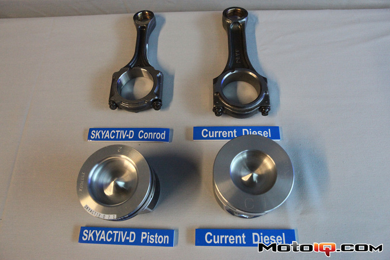 Poza obniżoną kompresją, kształtem i lekkością tłoków, podwójnym turbo, napędem rozrządu łańcuchem, w oczy rzuca się nowa kanapkowa konstrukcja (taka sama jak w benzynowym SKYACTIV-G PE). Silnik jest/będzie montowany do CX-5 i nowej "szóstki".