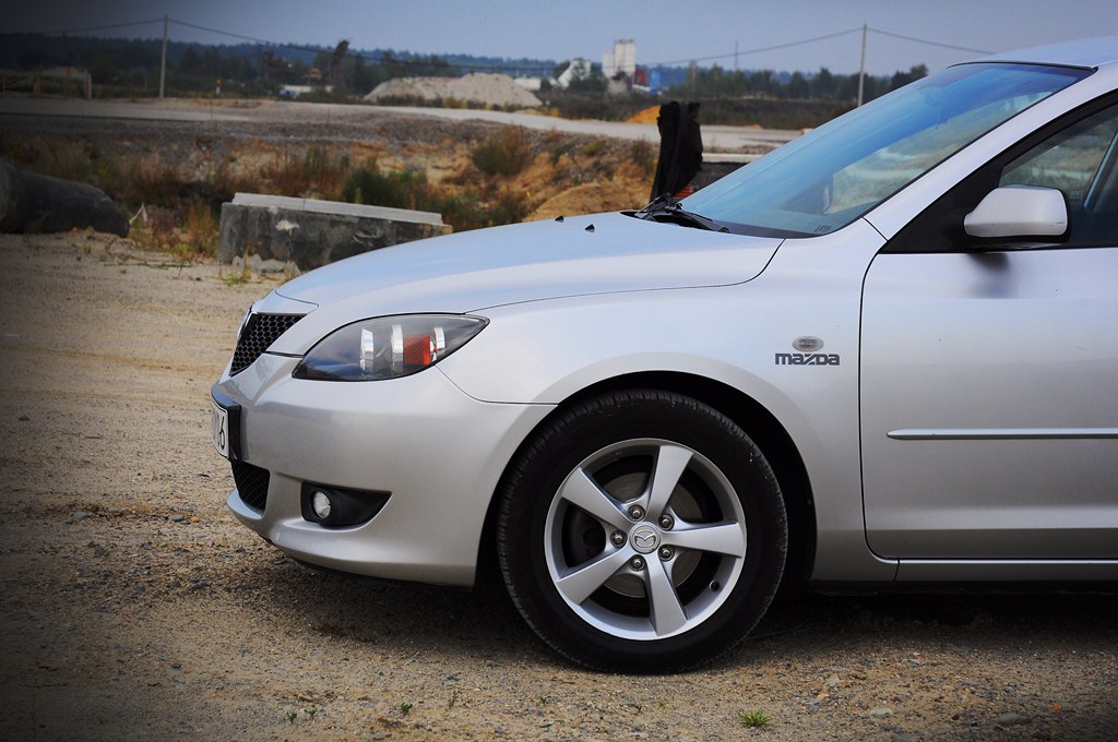 Mazda 3, rok 2004, dwóch właścicieli przede mną, przebieg 69 000 km. Byłem pewien że licznik cofany, może i tak, ale jeżeli już to o bardzo nie dużą wartość. Historia znana tyko w okresie posiadania przez pierwszego właściciela. Drugim zaś była kobieta, która woziła swoją pociechę i psa, co owocuje obgryzionym fotelem pasażera na dole, niezbyt widoczne, bo zuważlyliśmy po ponad godzinie oglądania i futrem w bagażniku.