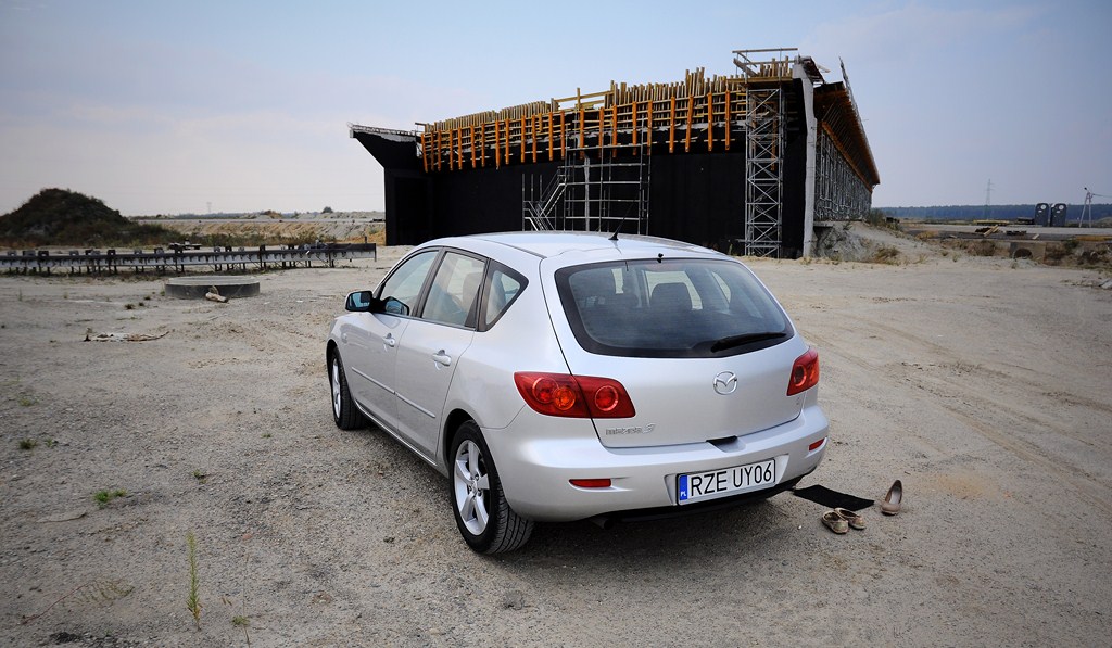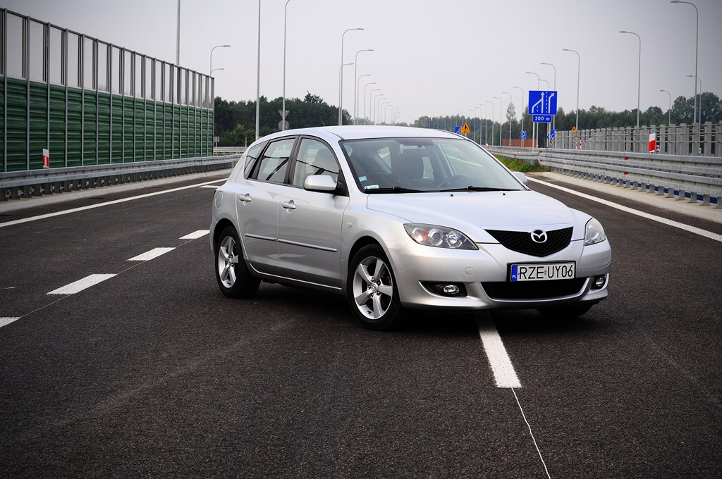 Mazda 3, rok 2004, dwóch właścicieli przede mną, przebieg 69 000 km. Byłem pewien że licznik cofany, może i tak, ale jeżeli już to o bardzo nie dużą wartość. Historia znana tyko w okresie posiadania przez pierwszego właściciela. Drugim zaś była kobieta, która woziła swoją pociechę i psa, co owocuje obgryzionym fotelem pasażera na dole, niezbyt widoczne, bo zuważlyliśmy po ponad godzinie oglądania i futrem w bagażniku.