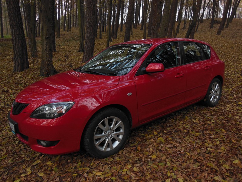 Witam! Nie dawno zakupiłem mazdę 3 2004 rok przebieg 190 tysięcy. Mazda była sprowadzona z Belgi. Kolor samochodu mnie zachwycił chociaż to nie jest najważniejsze. Ale lakier jest czerwony ksyralik w słońcu robi niesamowite wrażenie :) Wnętrze bardzo dobrze utrzymane. Trochę słaby silnik bo 1,6 benzyna jedyne 105KM ale daje radę. Jest to mój drugi samochód do tej pory posiadam Toyotę Avensis 2007r. Toyotę posiadam 3 lata i jak narazie żadnych awarii więc jestem przekonany do Japończyków. Ale wracając do Mazdy wymieniłem amorki z przodu KAYABA, jutro mi przyjdzie nowe sprzęgło LUK filtr oleju i tablice klubowe. Oczywiście ze sklepu KLUB MAZDASPEED :D .