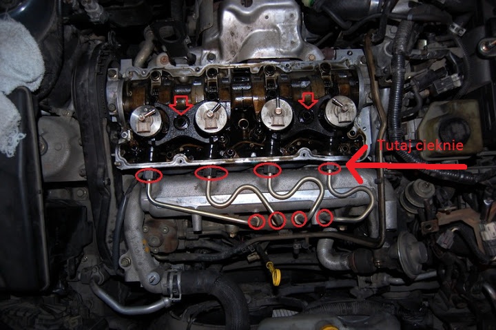 Mam wyciek oleju w miejscu zaznaczonym na zdjęciu. Czy to coś poważnego ? I co muszę ewentualnie wymienić, żeby to wyeliminować ?