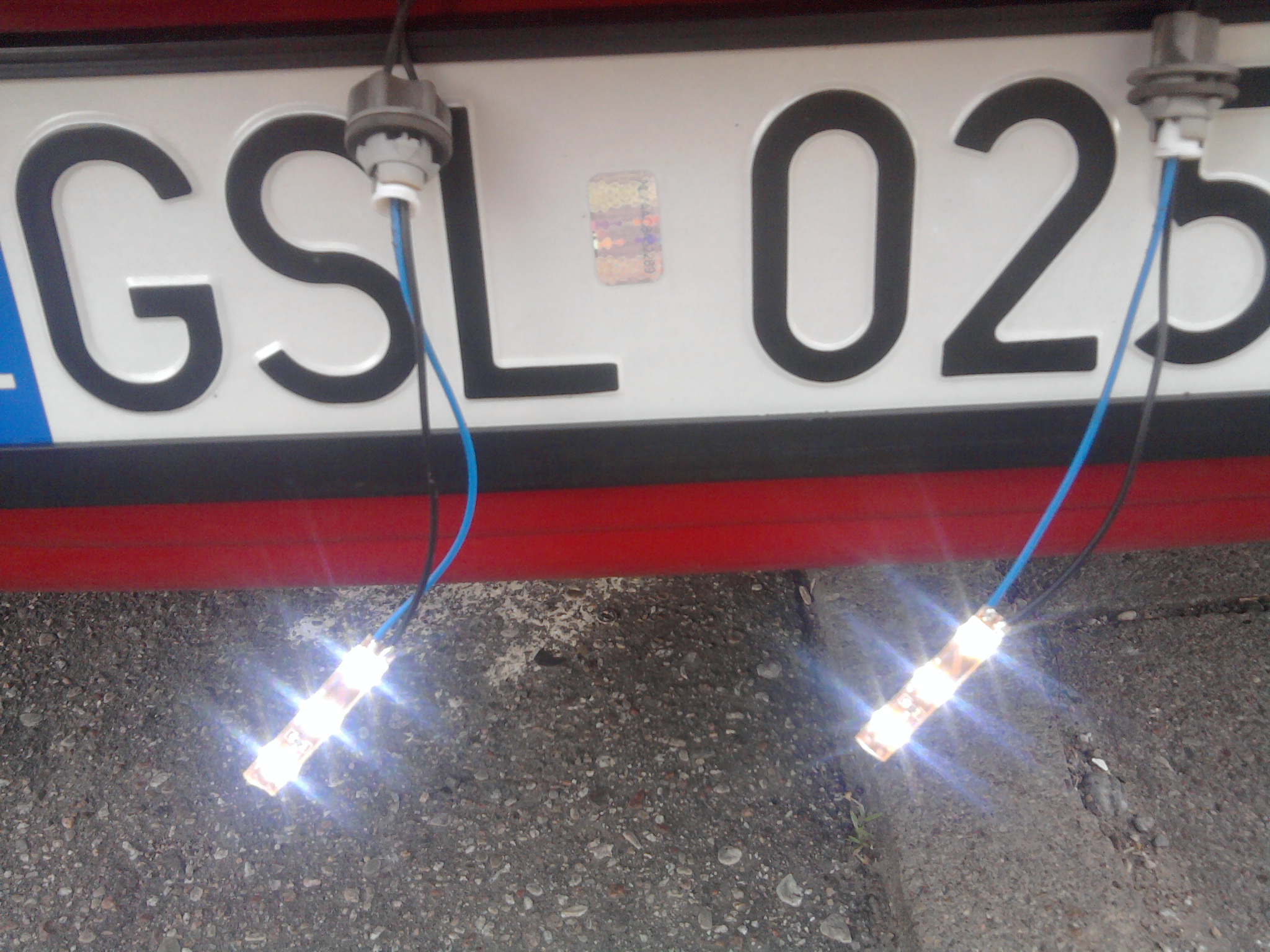 Moim zdaniem głupio zrobiłeś z podświetleniem rejestracji. Dlaczego nie mogłeś dać tych pasków normalnie w oprawkę do środka? Niby są w sylikonie te diody, ale jak dłużej jak 2 lata wytrzymają w tym układzie to będzie dobrze.