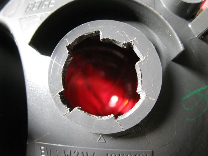 Tak tylko że więcej roboty z większą dziurą. Średnica żarówki jest niewiele weższa jak tej okrąg z tyłu lampy.