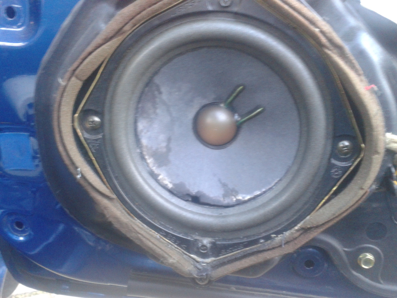 Po demontażu boczku drzwi to co zobaczyłem przeszło moje najśmielsze oczekiwania. Głośnik zgnity od wody. Aż dziwne, że w ogóle grał. Jak go wykręciłem to ze środka wylałem szklankę deszczówki na ziemię. Taki stan dotyczy obu przednich głośników.